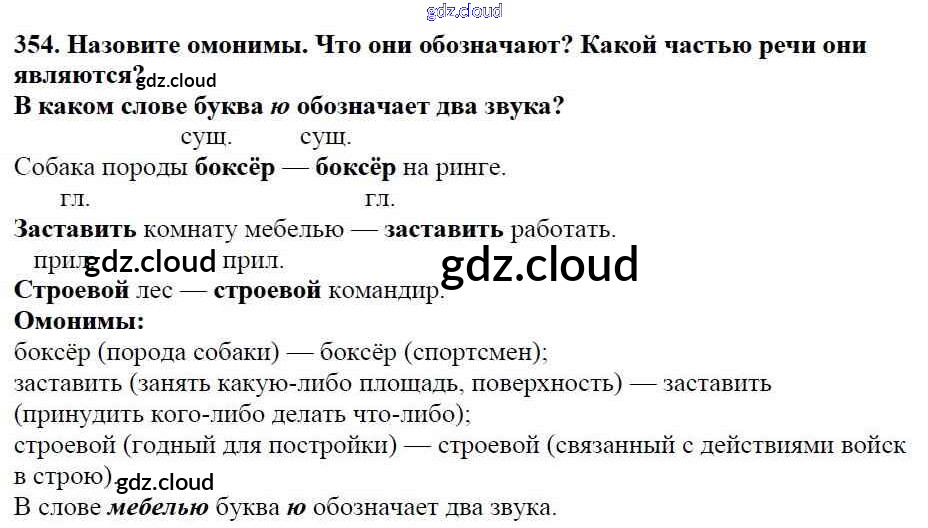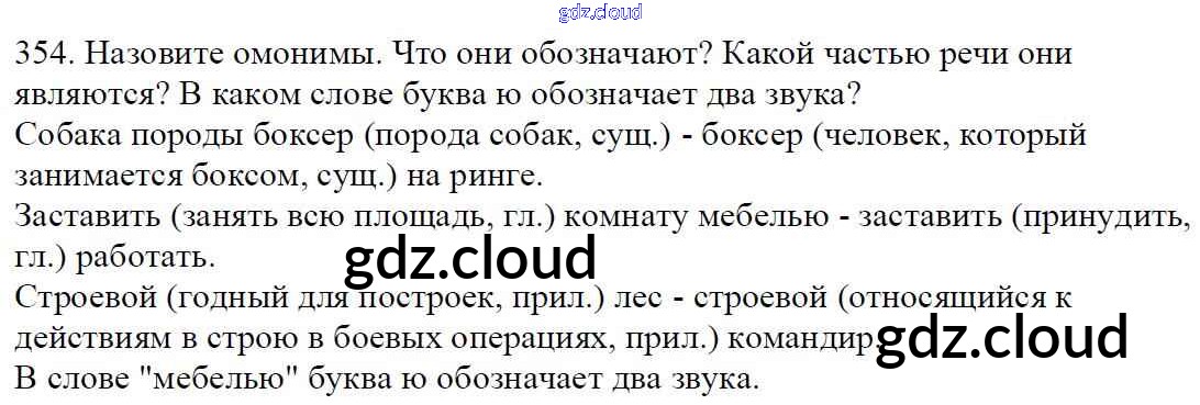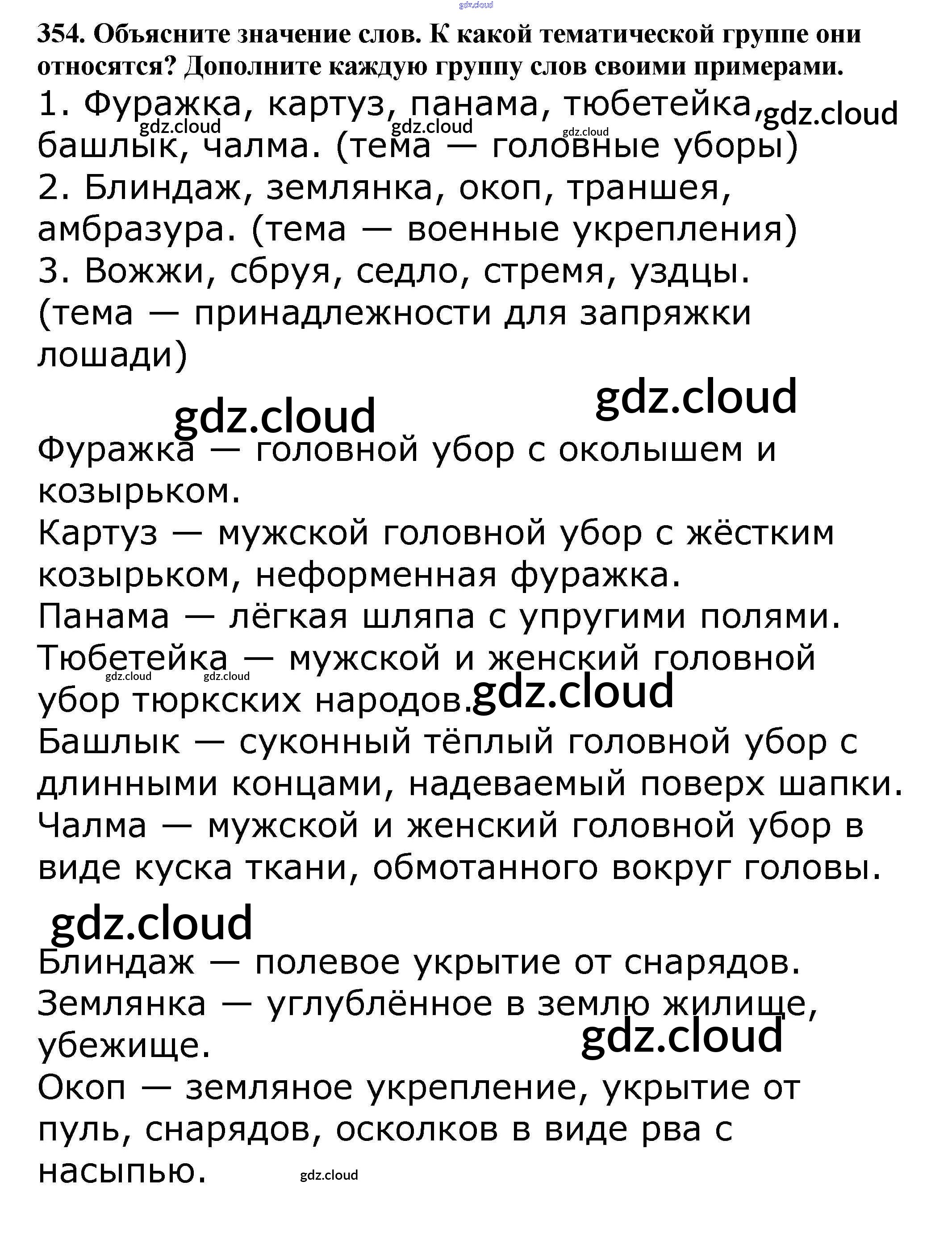 Ответ на задание 354 Учебник Русский язык за 5 (пятый) класс Баранов, Ладыженская, Тростенцова, Кулибаба, Григорян 2016, 2019 Часть 1, 2