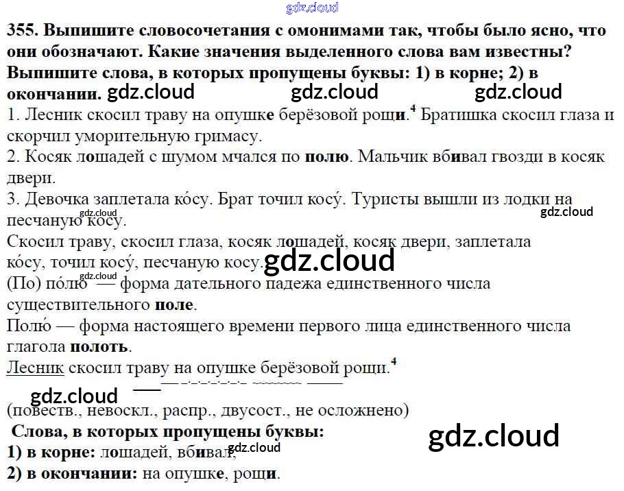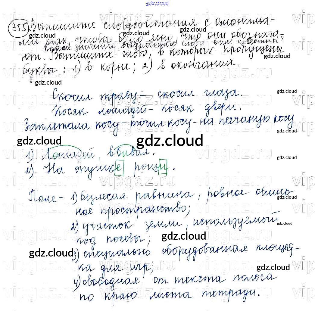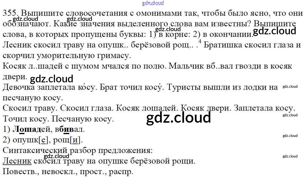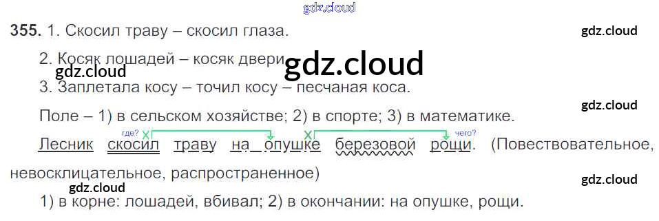 Ответ на задание 355 Учебник Русский язык за 5 (пятый) класс Баранов, Ладыженская, Тростенцова, Кулибаба, Григорян 2016, 2019 Часть 1, 2