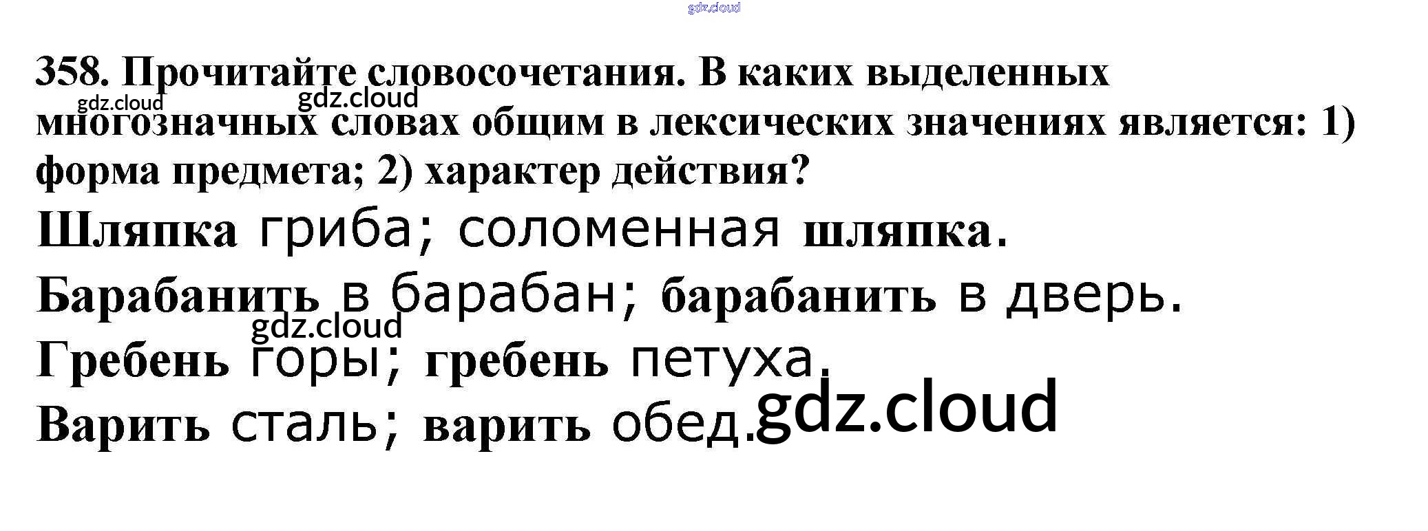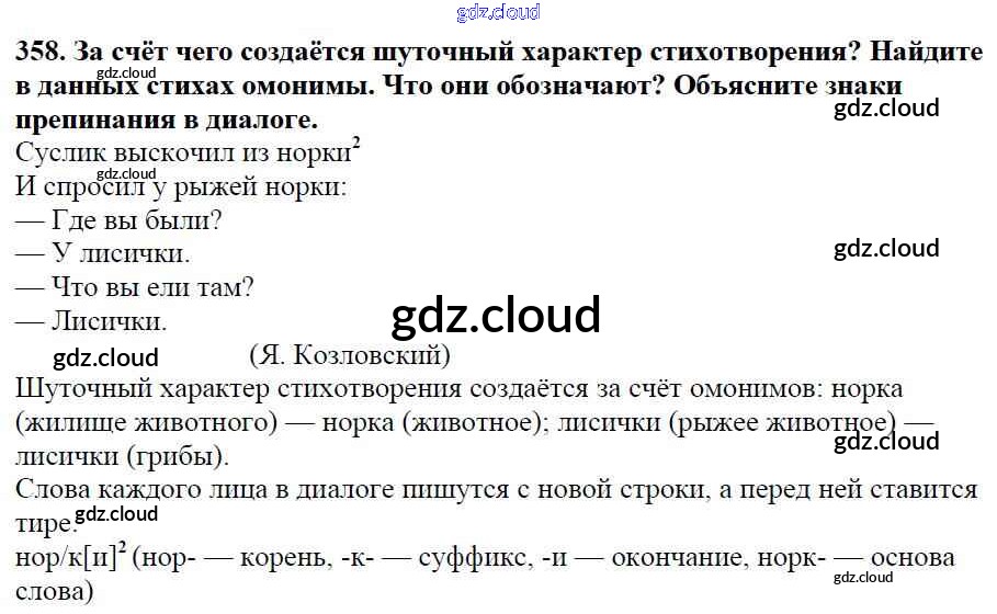 Ответ на задание 358 Учебник Русский язык за 5 (пятый) класс Баранов, Ладыженская, Тростенцова, Кулибаба, Григорян 2016, 2019 Часть 1, 2
