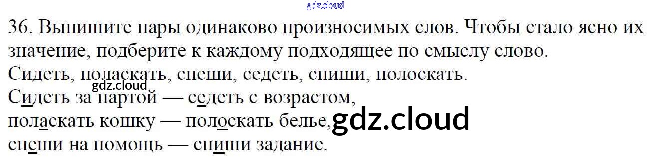 Ответ на задание 36 Учебник Русский язык за 5 (пятый) класс Баранов, Ладыженская, Тростенцова, Кулибаба, Григорян 2016, 2019 Часть 1, 2