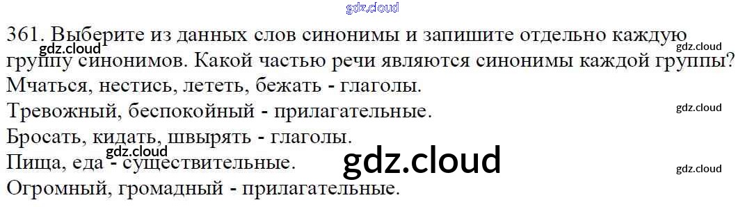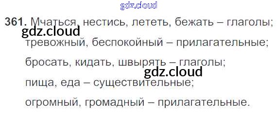 Ответ на задание 361 Учебник Русский язык за 5 (пятый) класс Баранов, Ладыженская, Тростенцова, Кулибаба, Григорян 2016, 2019 Часть 1, 2
