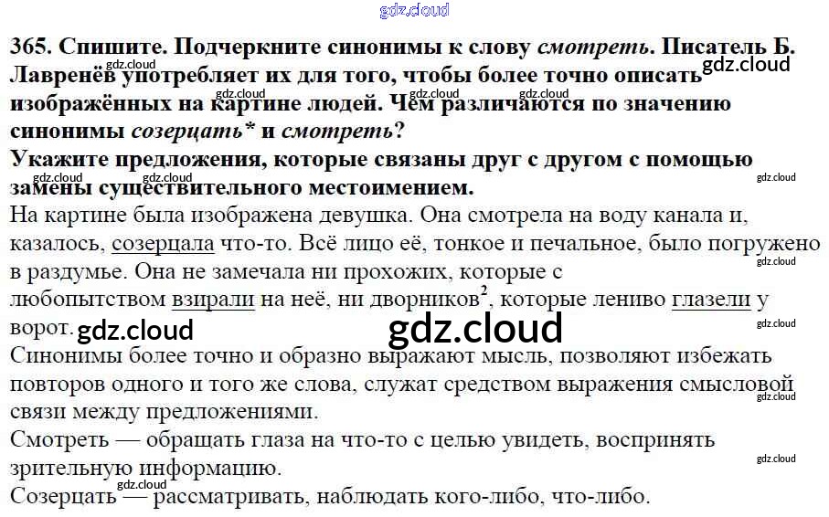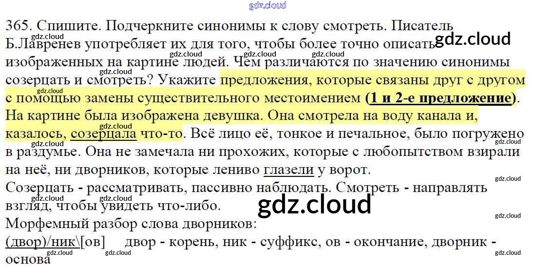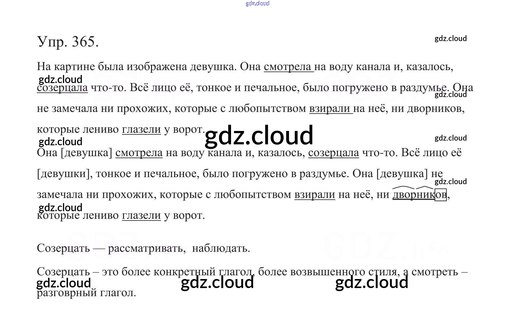 Ответ на задание 365 Учебник Русский язык за 5 (пятый) класс Баранов, Ладыженская, Тростенцова, Кулибаба, Григорян 2016, 2019 Часть 1, 2