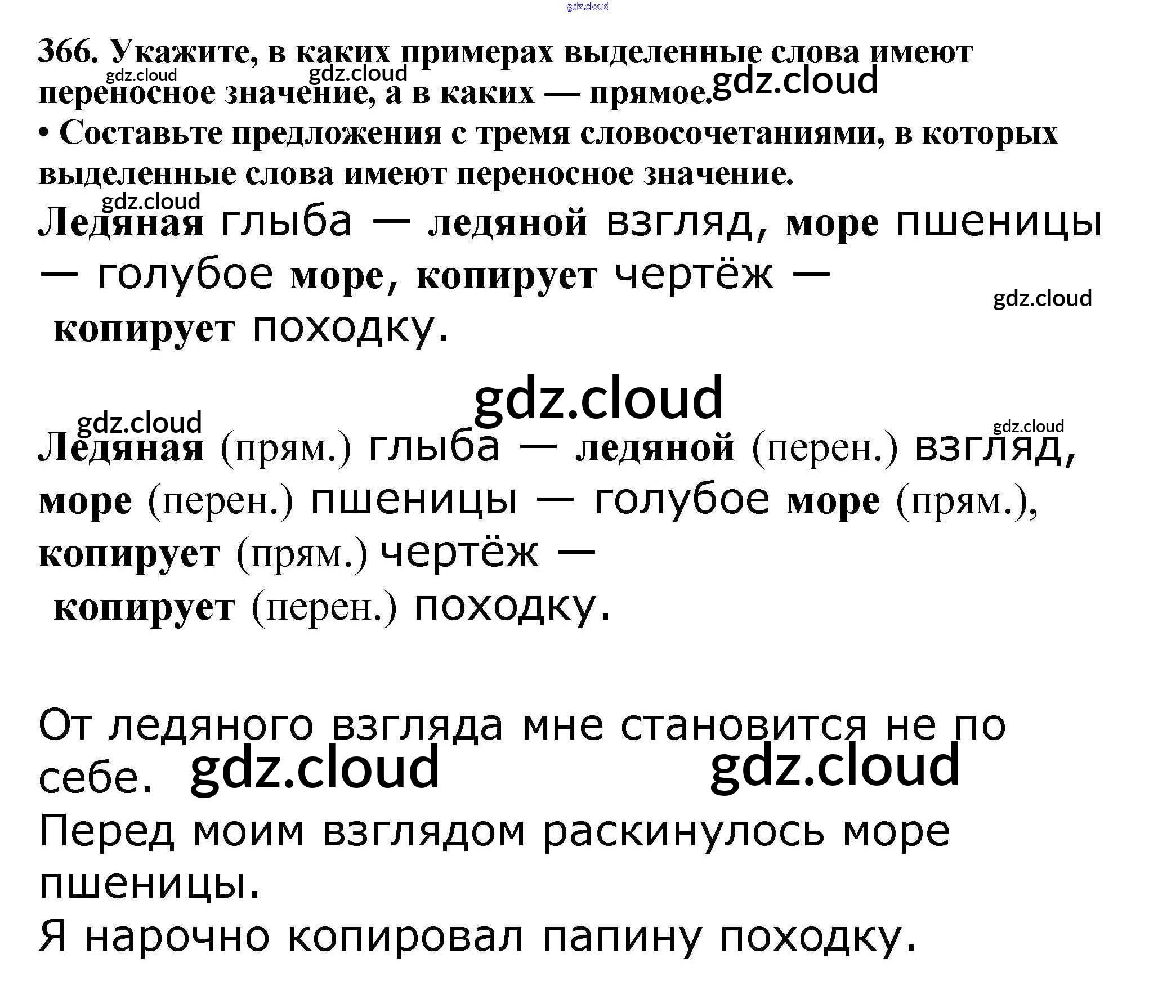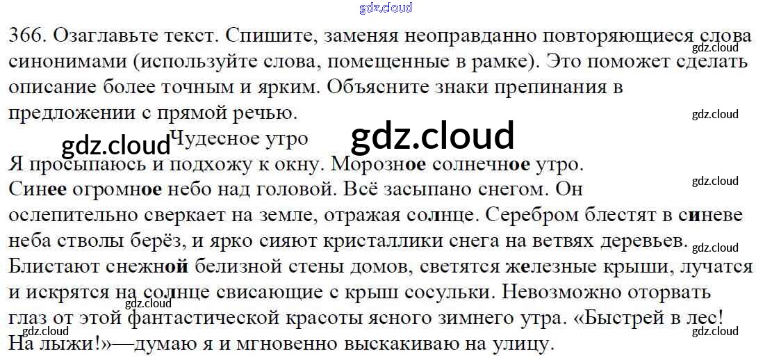Ответ на задание 366 Учебник Русский язык за 5 (пятый) класс Баранов, Ладыженская, Тростенцова, Кулибаба, Григорян 2016, 2019 Часть 1, 2