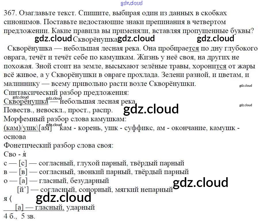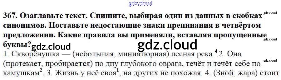 Ответ на задание 367 Учебник Русский язык за 5 (пятый) класс Баранов, Ладыженская, Тростенцова, Кулибаба, Григорян 2016, 2019 Часть 1, 2