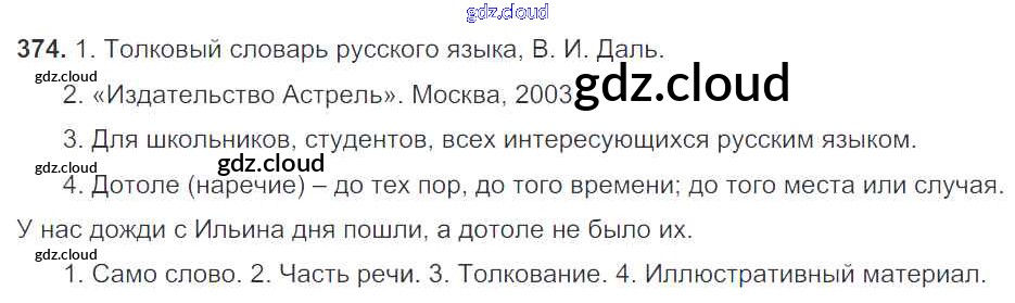 Ответ на задание 374 Учебник Русский язык за 5 (пятый) класс Баранов, Ладыженская, Тростенцова, Кулибаба, Григорян 2016, 2019 Часть 1, 2