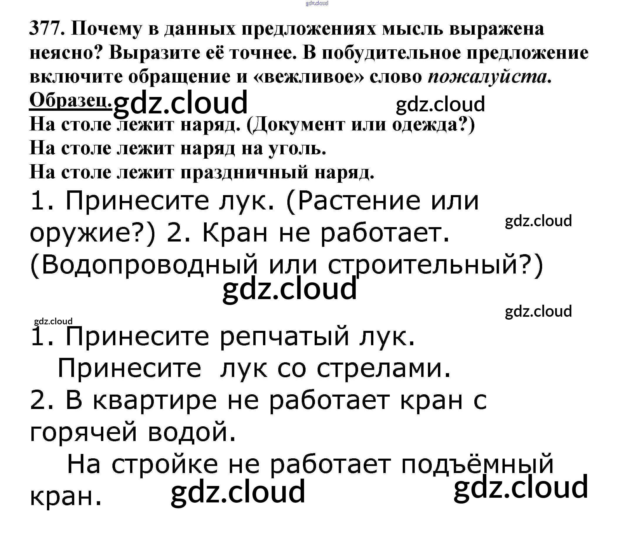 Ответ на задание 377 Учебник Русский язык за 5 (пятый) класс Баранов, Ладыженская, Тростенцова, Кулибаба, Григорян 2016, 2019 Часть 1, 2
