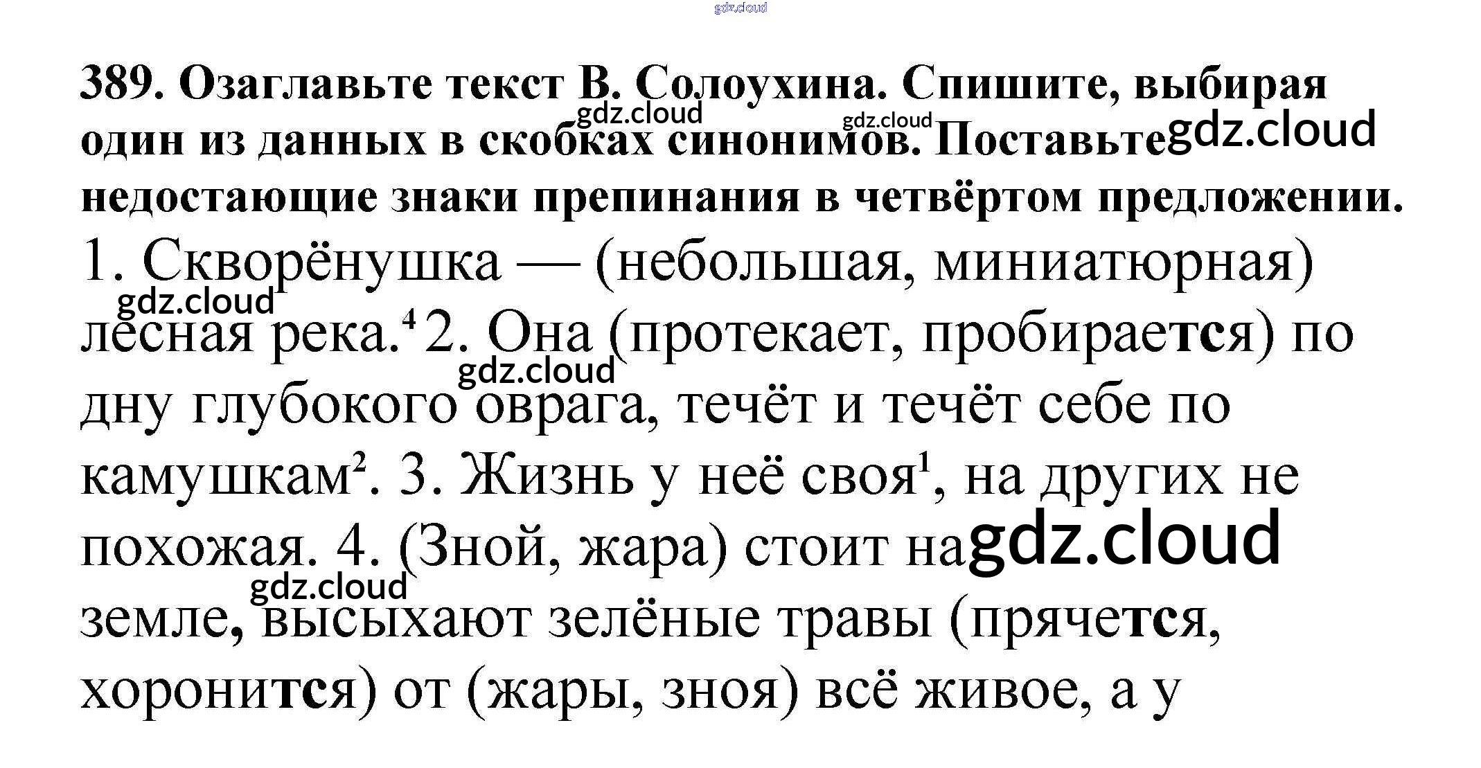 Ответ на задание 389 Учебник Русский язык за 5 (пятый) класс Баранов, Ладыженская, Тростенцова, Кулибаба, Григорян 2016, 2019 Часть 1, 2