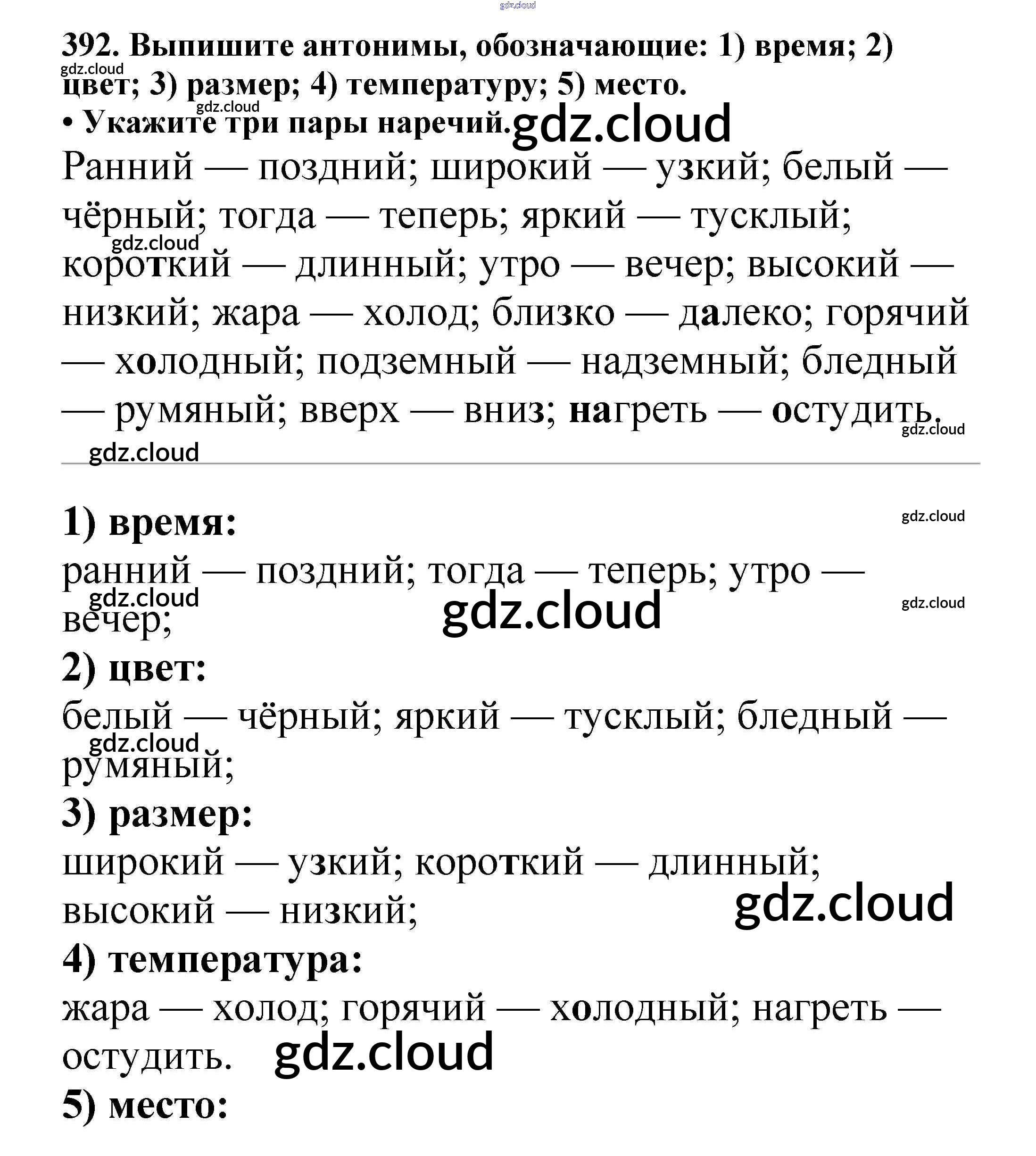 Ответ на задание 392 Учебник Русский язык за 5 (пятый) класс Баранов, Ладыженская, Тростенцова, Кулибаба, Григорян 2016, 2019 Часть 1, 2