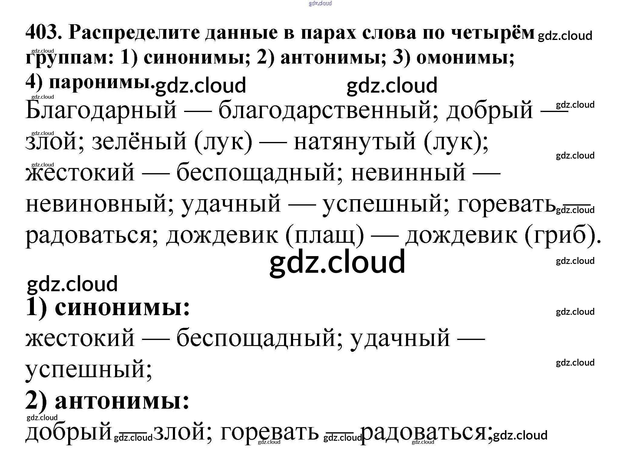 Ответ на задание 403 Учебник Русский язык за 5 (пятый) класс Баранов, Ладыженская, Тростенцова, Кулибаба, Григорян 2016, 2019 Часть 1, 2
