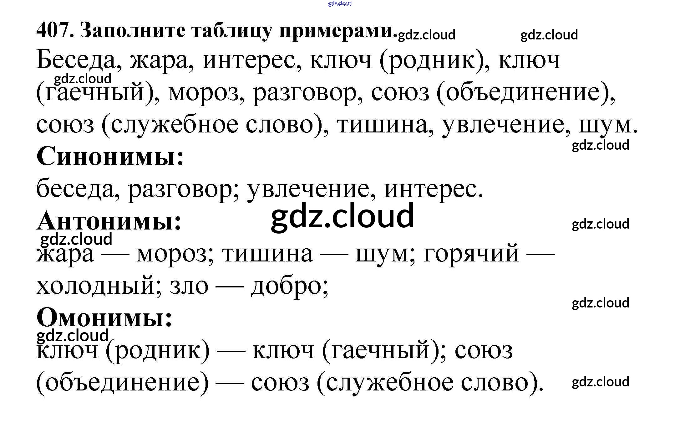 Ответ на задание 407 Учебник Русский язык за 5 (пятый) класс Баранов, Ладыженская, Тростенцова, Кулибаба, Григорян 2016, 2019 Часть 1, 2