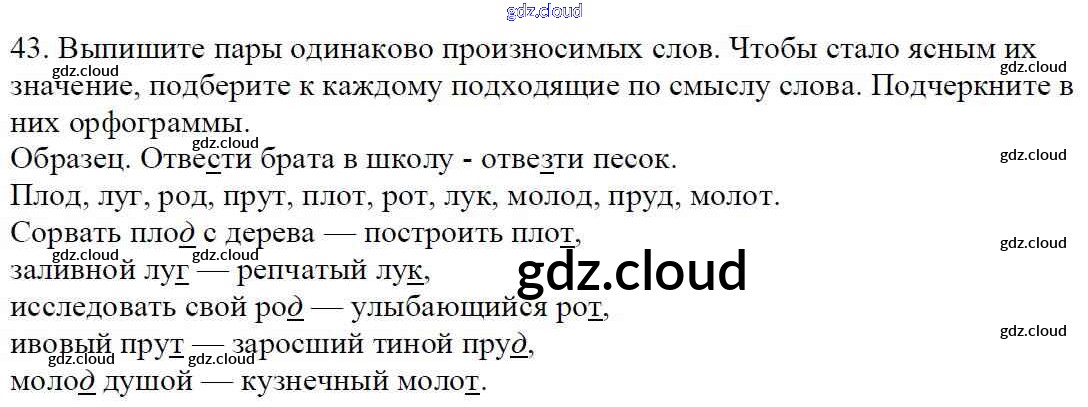 Ответ на задание 43 Учебник Русский язык за 5 (пятый) класс Баранов, Ладыженская, Тростенцова, Кулибаба, Григорян 2016, 2019 Часть 1, 2