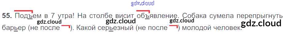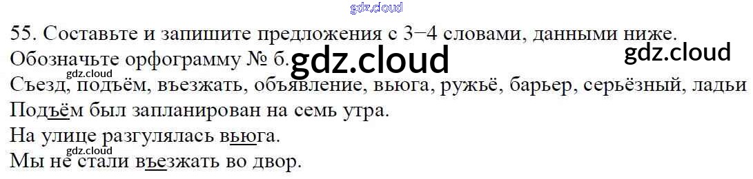 Ответ на задание 55 Учебник Русский язык за 5 (пятый) класс Баранов, Ладыженская, Тростенцова, Кулибаба, Григорян 2016, 2019 Часть 1, 2