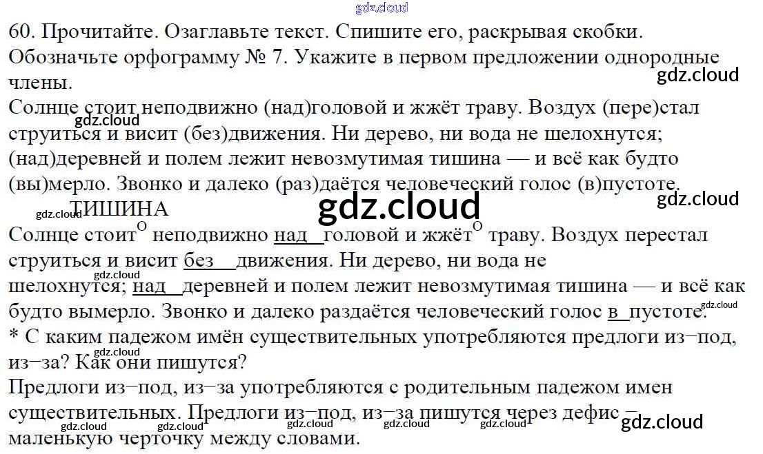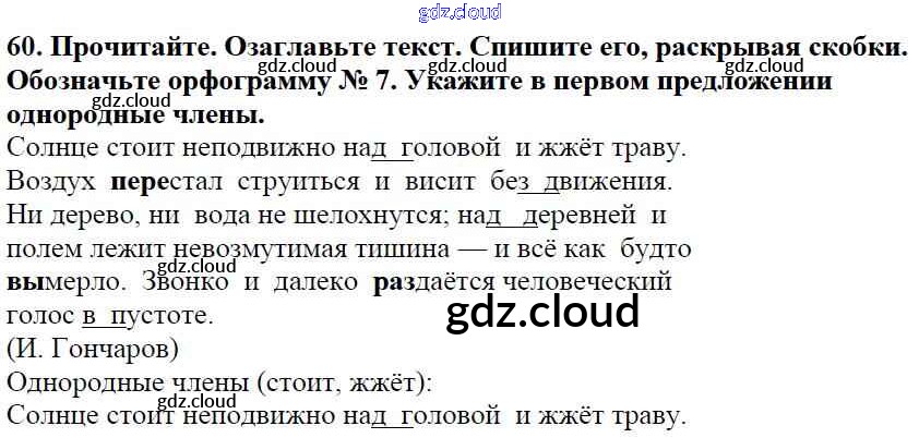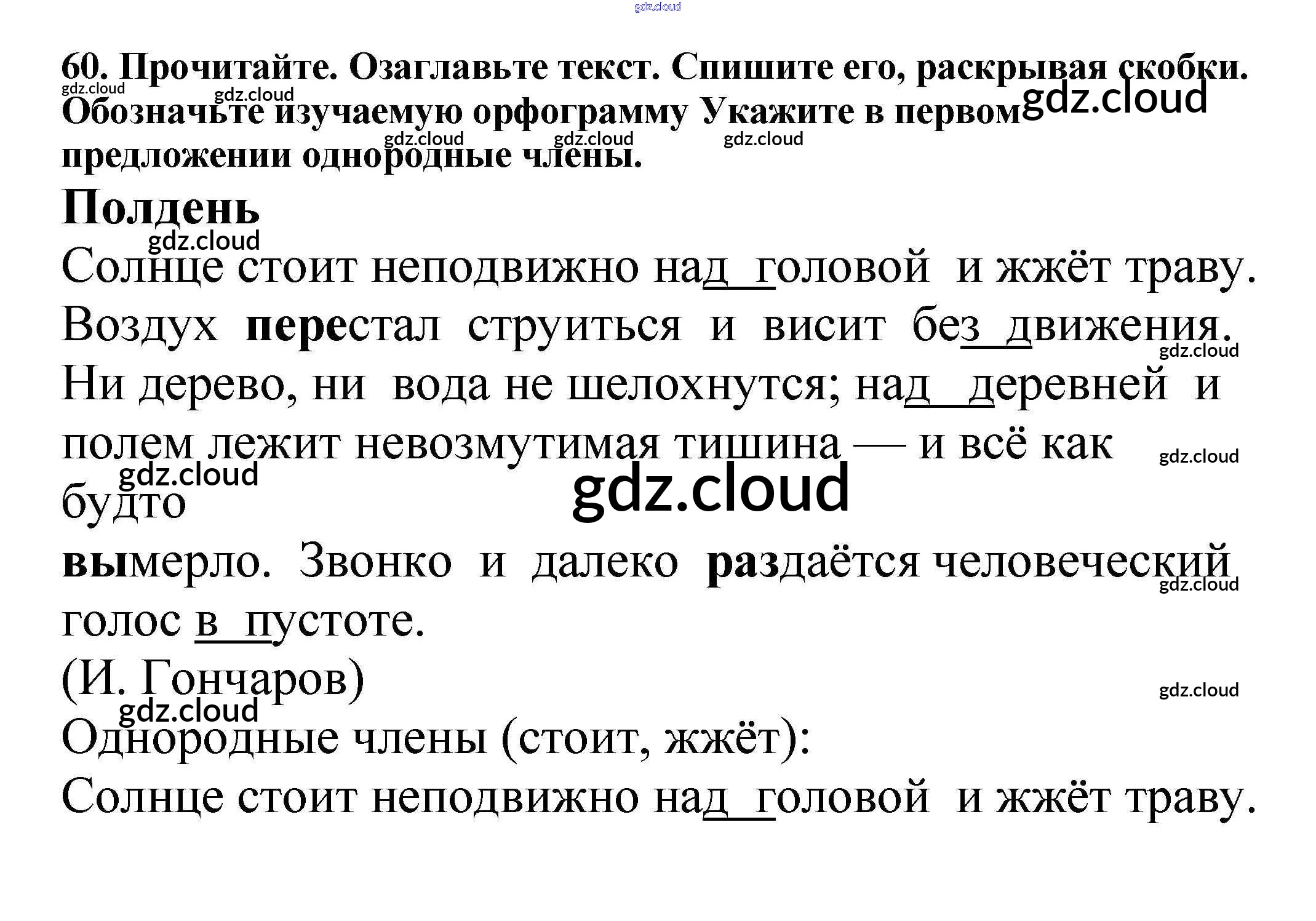 Ответ на задание 60 Учебник Русский язык за 5 (пятый) класс Баранов, Ладыженская, Тростенцова, Кулибаба, Григорян 2016, 2019 Часть 1, 2