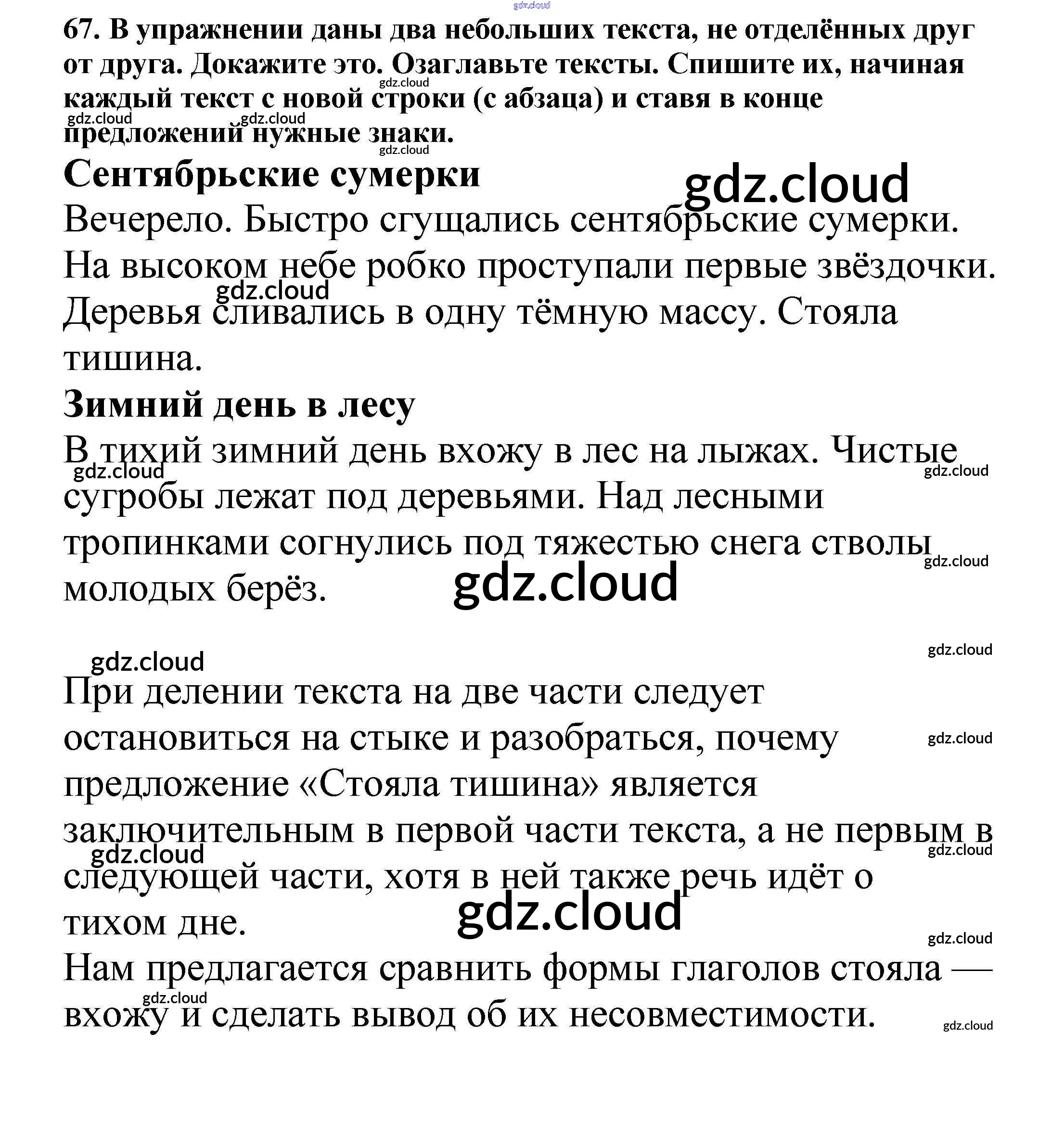 Ответ на задание 67 Учебник Русский язык за 5 (пятый) класс Баранов, Ладыженская, Тростенцова, Кулибаба, Григорян 2016, 2019 Часть 1, 2