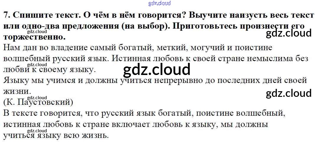Ответ на задание 7 Учебник Русский язык за 5 (пятый) класс Баранов, Ладыженская, Тростенцова, Кулибаба, Григорян 2016, 2019 Часть 1, 2