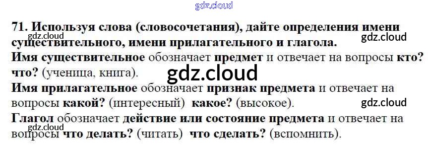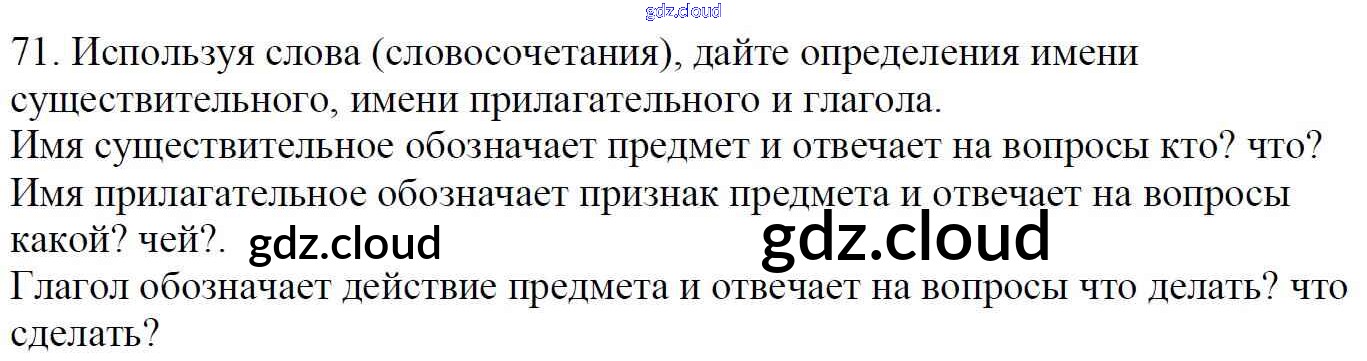 Ответ на задание 71 Учебник Русский язык за 5 (пятый) класс Баранов, Ладыженская, Тростенцова, Кулибаба, Григорян 2016, 2019 Часть 1, 2
