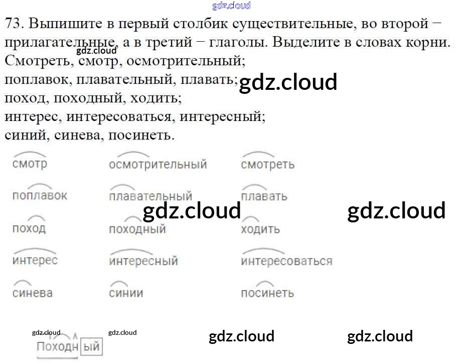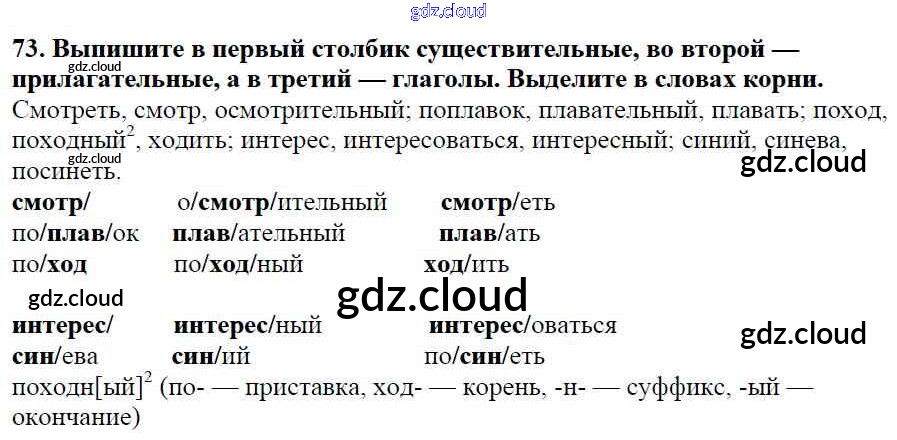Ответ на задание 73 Учебник Русский язык за 5 (пятый) класс Баранов, Ладыженская, Тростенцова, Кулибаба, Григорян 2016, 2019 Часть 1, 2