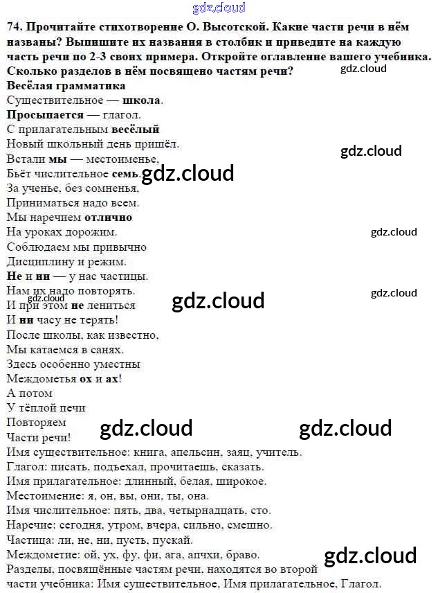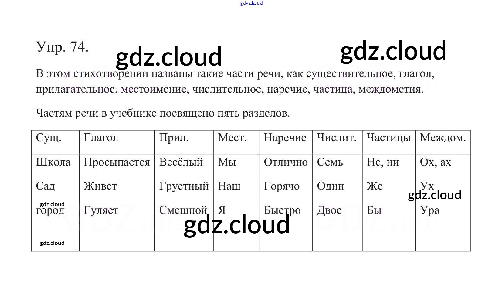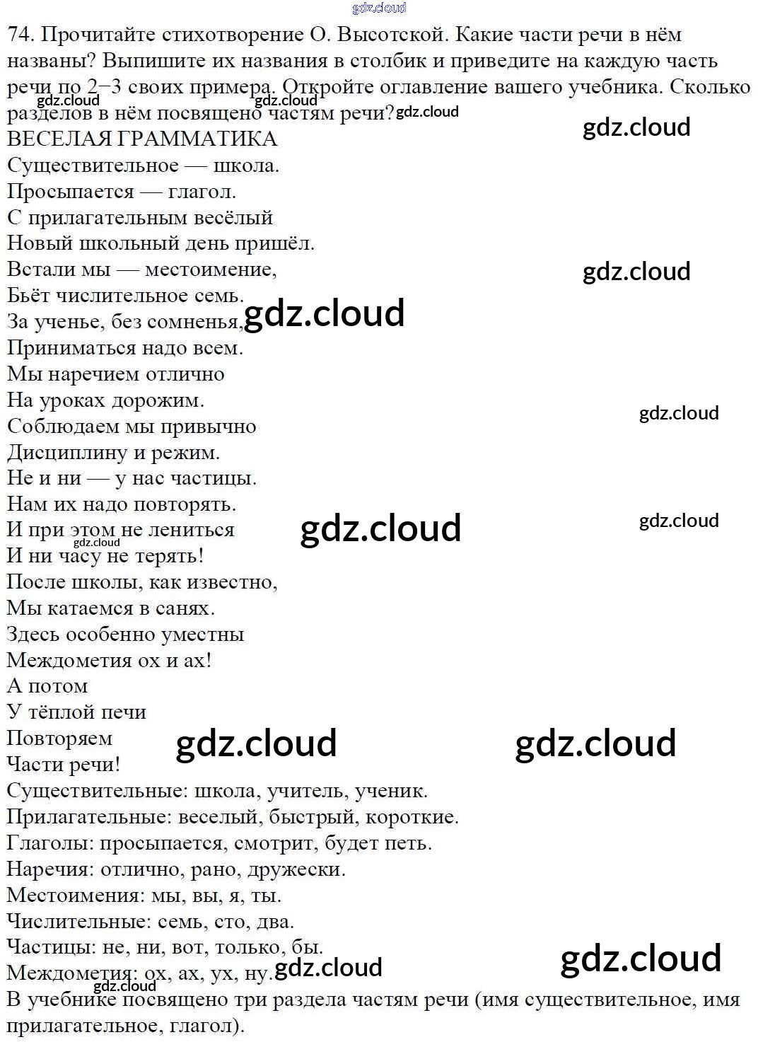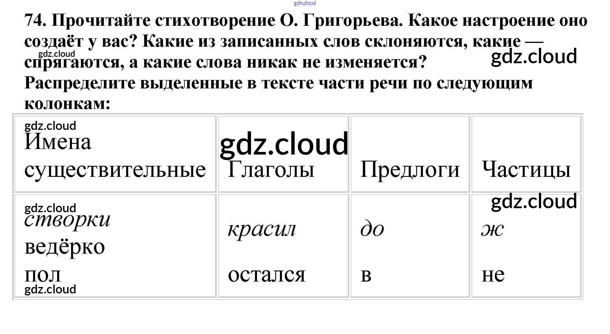 Ответ на задание 74 Учебник Русский язык за 5 (пятый) класс Баранов, Ладыженская, Тростенцова, Кулибаба, Григорян 2016, 2019 Часть 1, 2