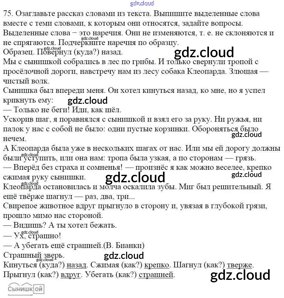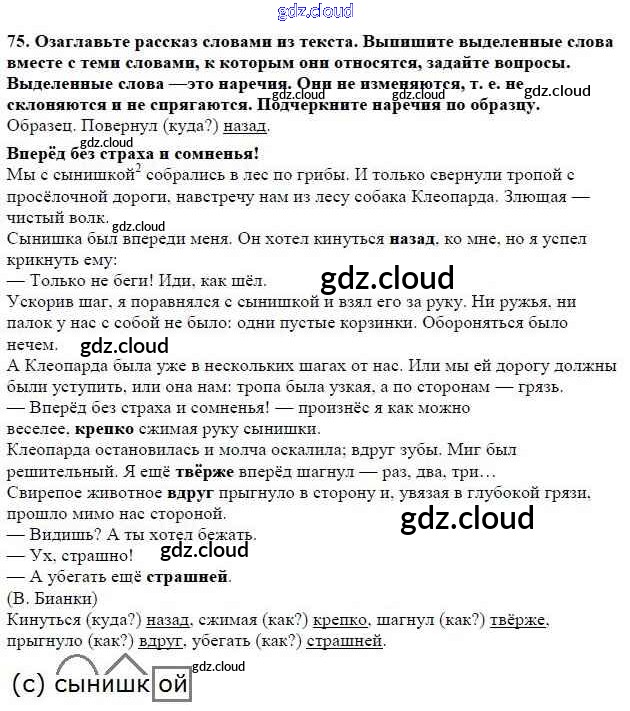 Ответ на задание 75 Учебник Русский язык за 5 (пятый) класс Баранов, Ладыженская, Тростенцова, Кулибаба, Григорян 2016, 2019 Часть 1, 2
