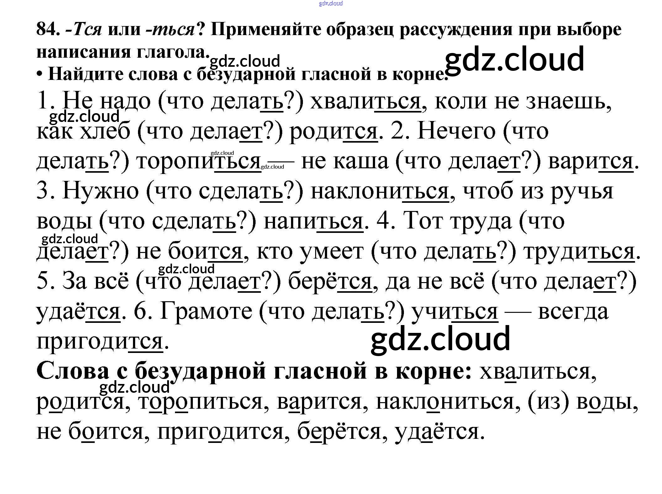 Ответ на задание 84 Учебник Русский язык за 5 (пятый) класс Баранов, Ладыженская, Тростенцова, Кулибаба, Григорян 2016, 2019 Часть 1, 2