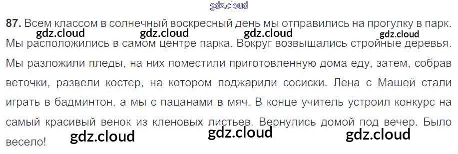 Ответ на задание 87 Учебник Русский язык за 5 (пятый) класс Баранов, Ладыженская, Тростенцова, Кулибаба, Григорян 2016, 2019 Часть 1, 2