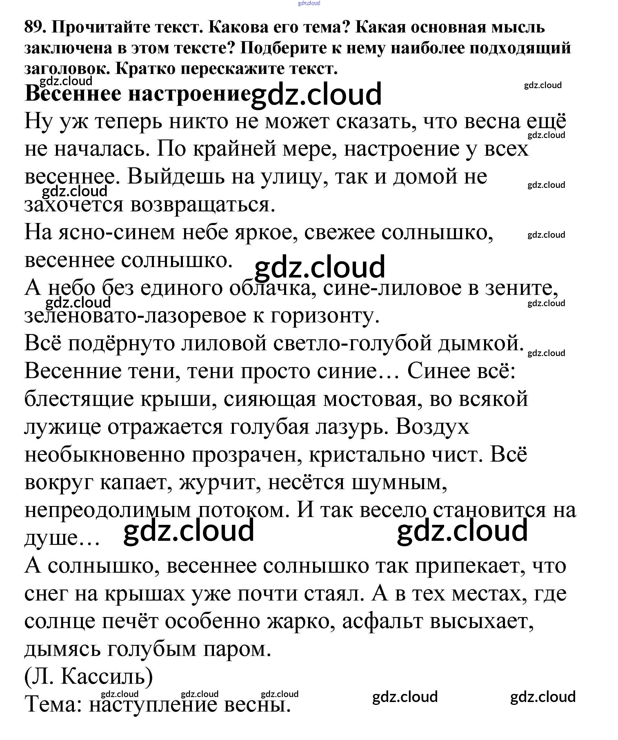 Ответ на задание 89 Учебник Русский язык за 5 (пятый) класс Баранов, Ладыженская, Тростенцова, Кулибаба, Григорян 2016, 2019 Часть 1, 2