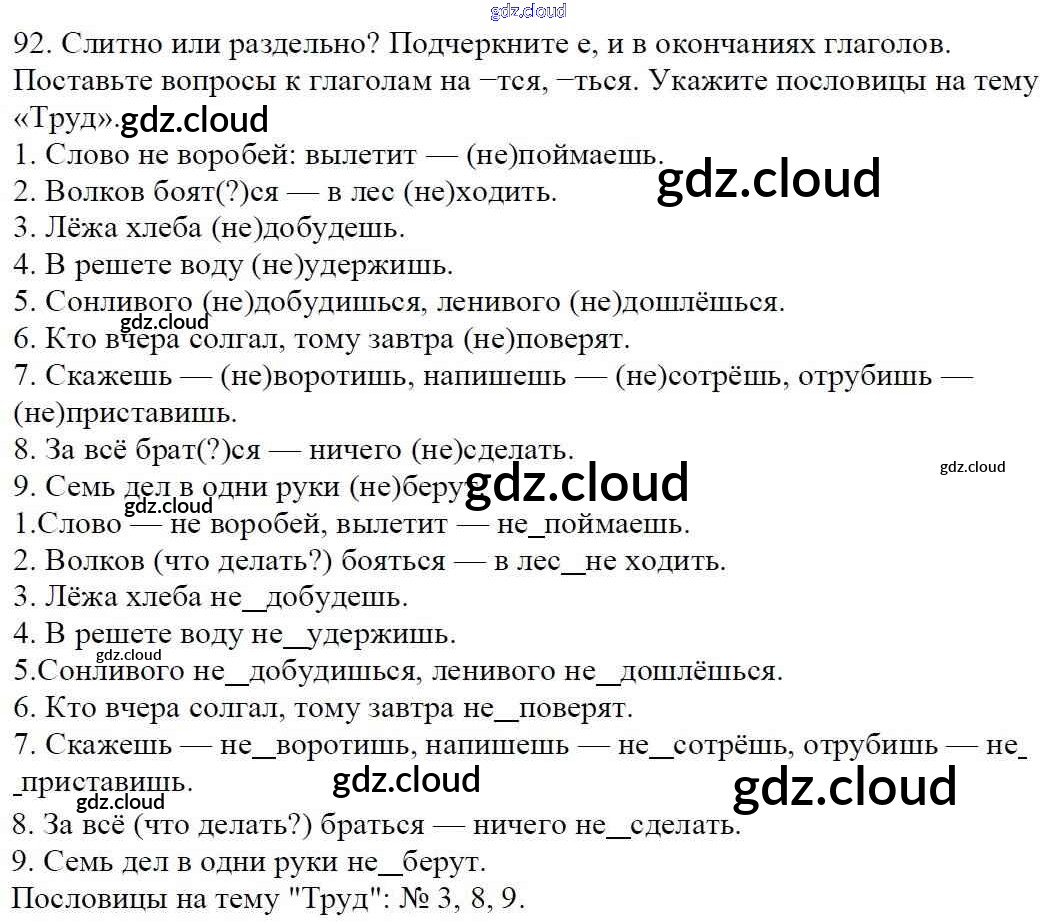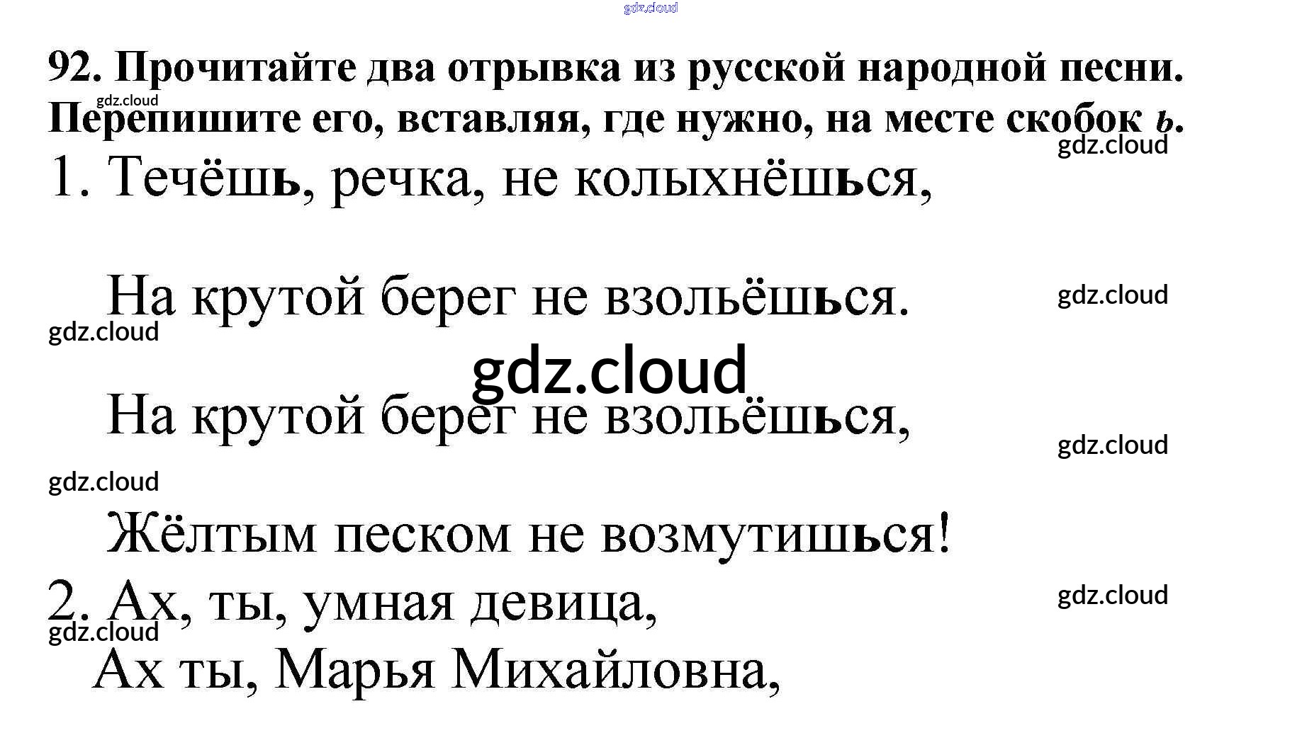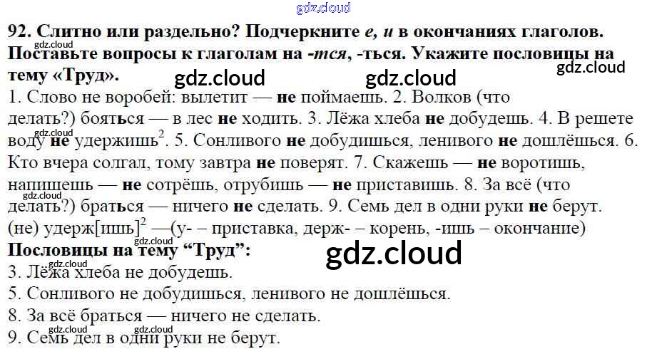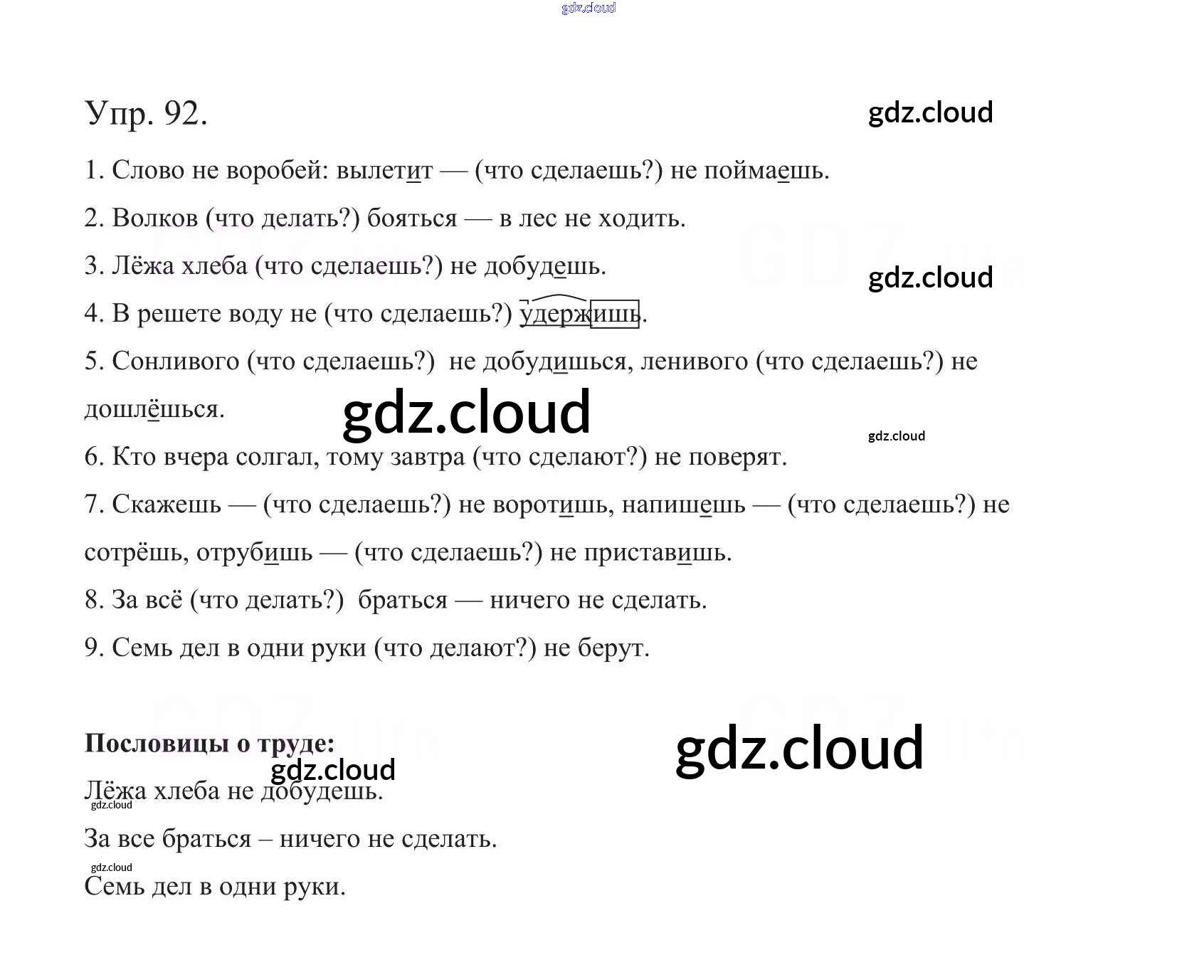 Ответ на задание 92 Учебник Русский язык за 5 (пятый) класс Баранов, Ладыженская, Тростенцова, Кулибаба, Григорян 2016, 2019 Часть 1, 2