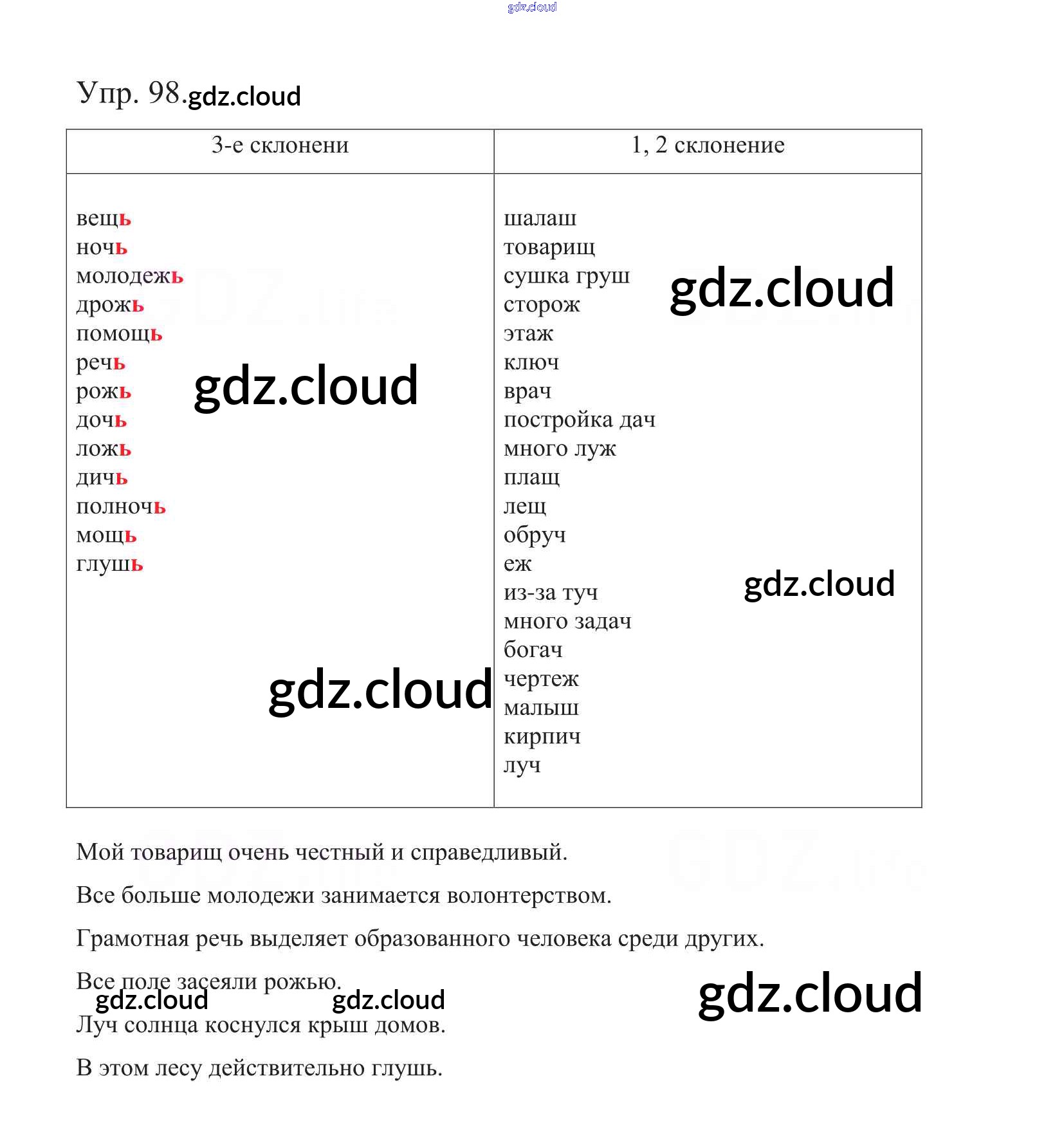 Ответ на задание 98 Учебник Русский язык за 5 (пятый) класс Баранов, Ладыженская, Тростенцова, Кулибаба, Григорян 2016, 2019 Часть 1, 2