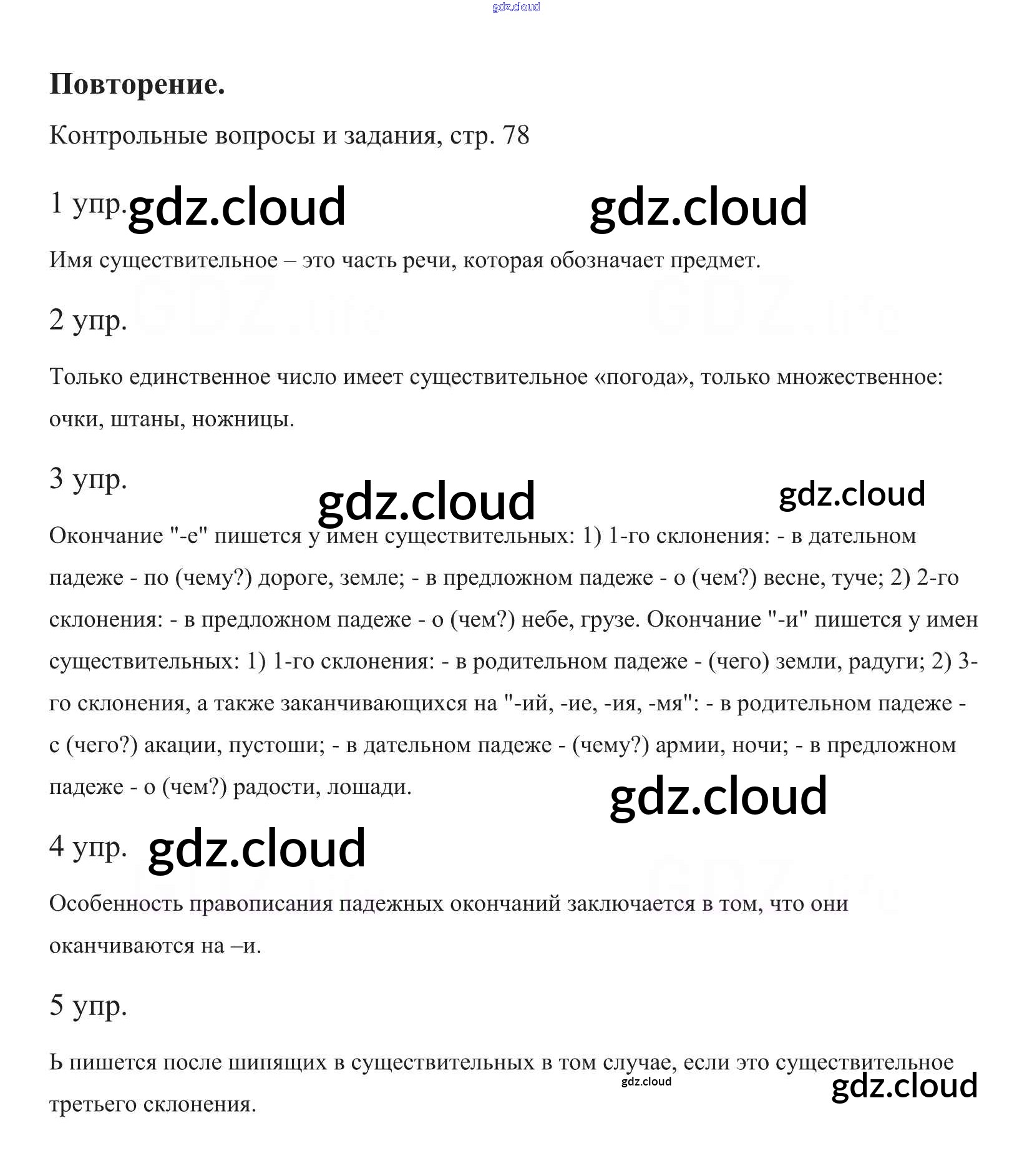 Повторение. Контрольные вопросы и задания Ответы к части 2. Упражнения по Русскому языку 5 класс Учебник Баранов Часть 1, 2 Просвещение, Просвещение
