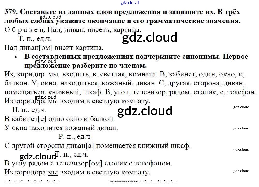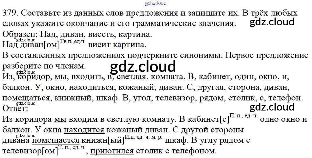 Ответ на задание 379 Учебник Русский язык за 5 (пятый) класс Баранов, Ладыженская, Тростенцова, Кулибаба, Григорян 2016, 2019 Часть 1, 2