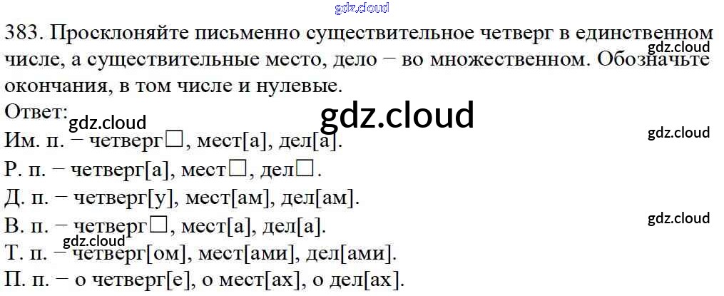 Ответ на задание 383 Учебник Русский язык за 5 (пятый) класс Баранов, Ладыженская, Тростенцова, Кулибаба, Григорян 2016, 2019 Часть 1, 2