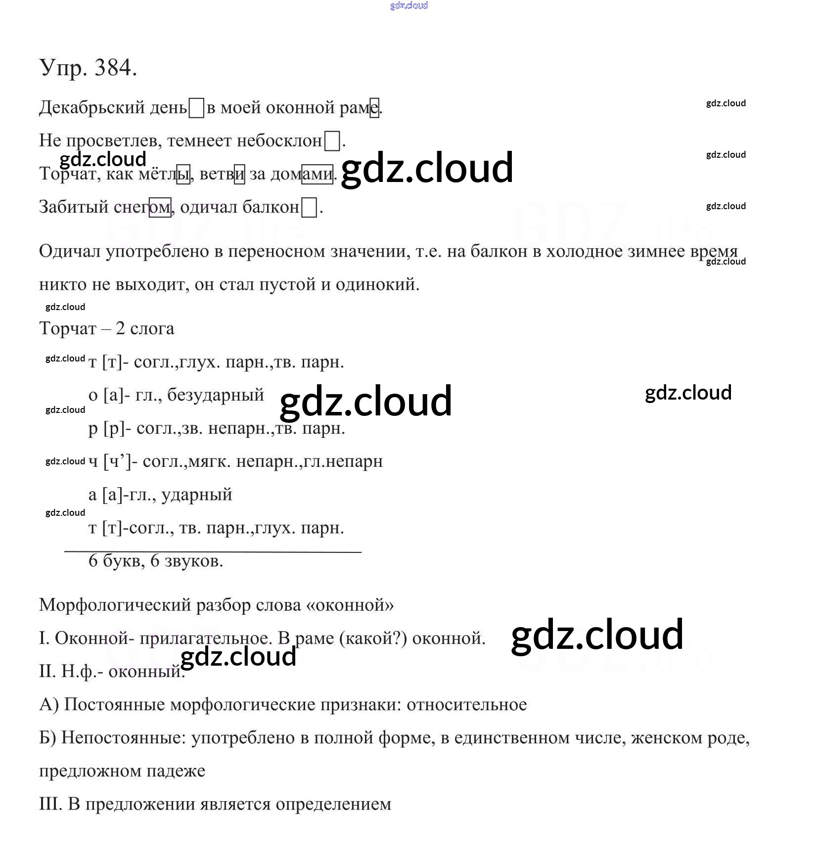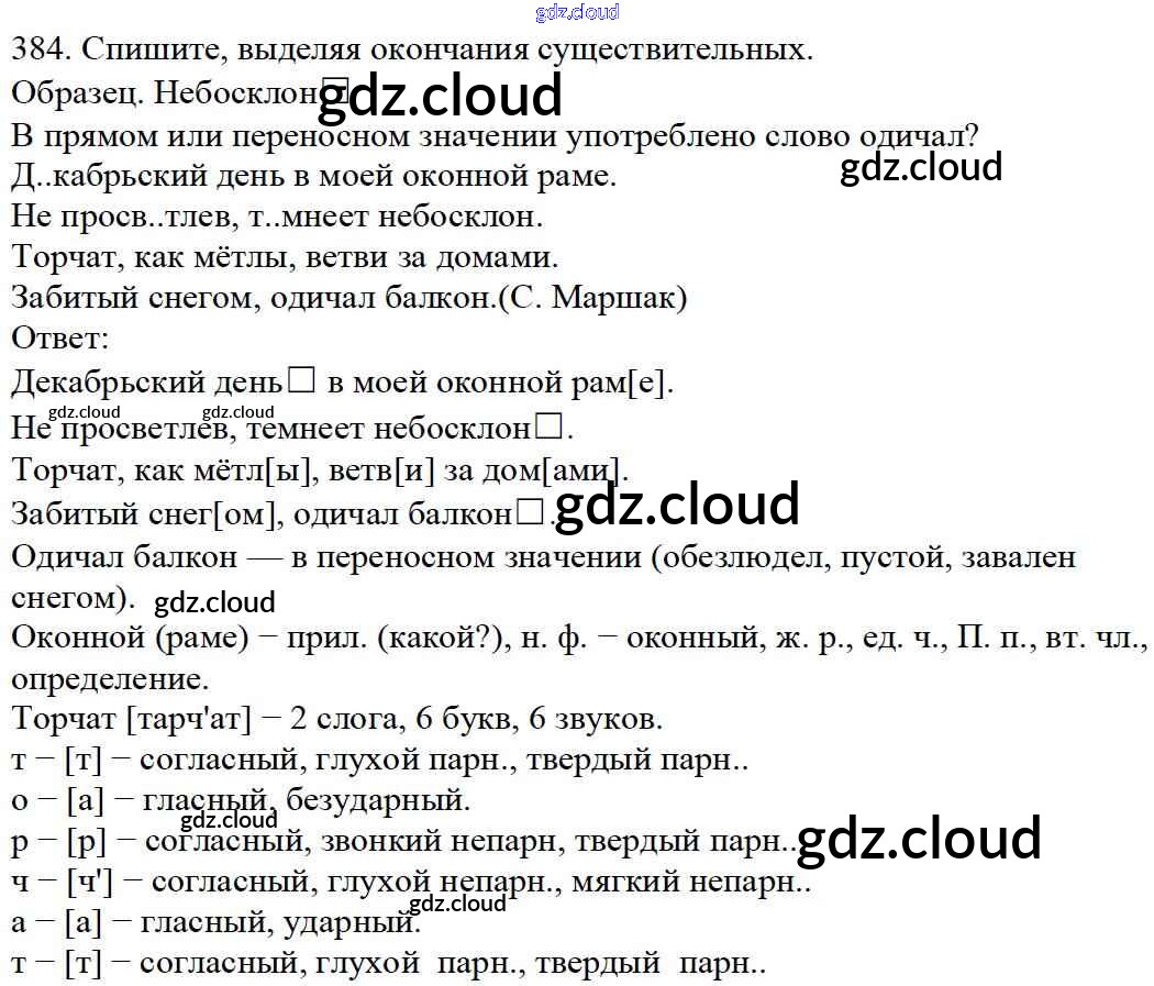 Ответ на задание 384 Учебник Русский язык за 5 (пятый) класс Баранов, Ладыженская, Тростенцова, Кулибаба, Григорян 2016, 2019 Часть 1, 2