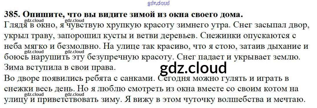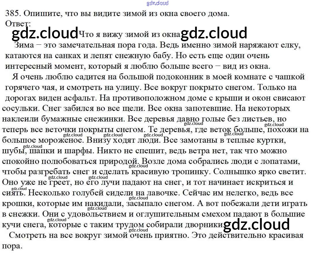 Ответ на задание 385 Учебник Русский язык за 5 (пятый) класс Баранов, Ладыженская, Тростенцова, Кулибаба, Григорян 2016, 2019 Часть 1, 2