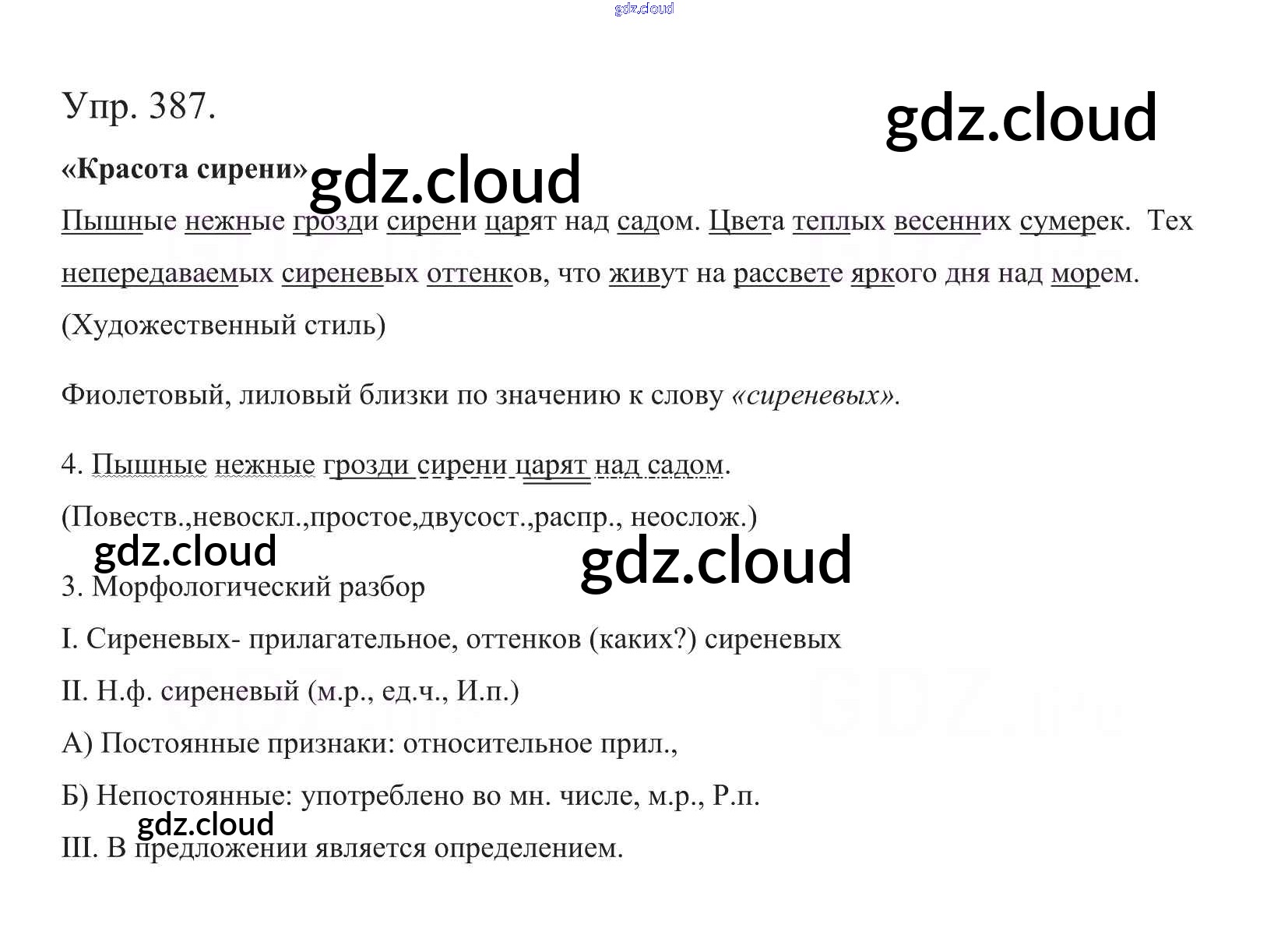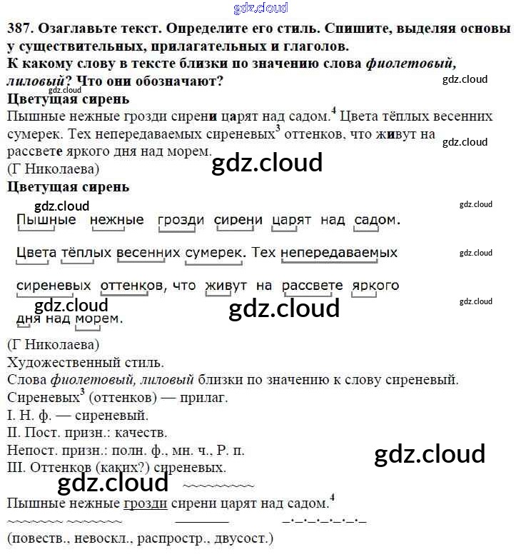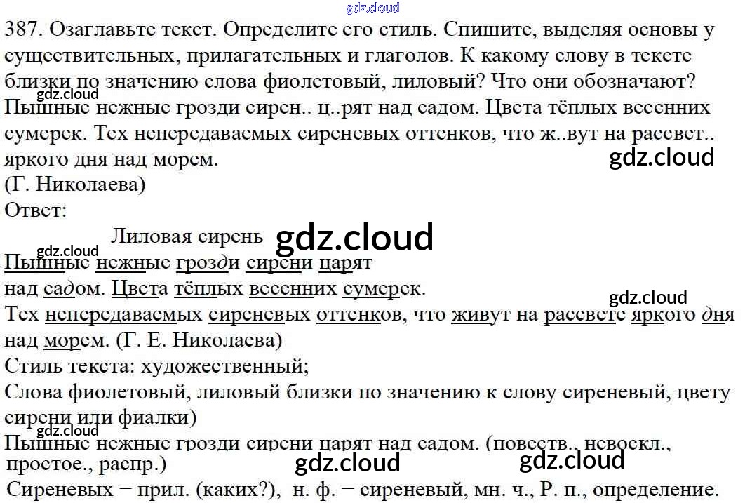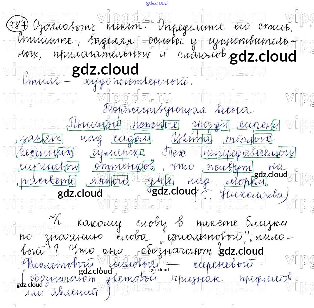 Ответ на задание 387 Учебник Русский язык за 5 (пятый) класс Баранов, Ладыженская, Тростенцова, Кулибаба, Григорян 2016, 2019 Часть 1, 2