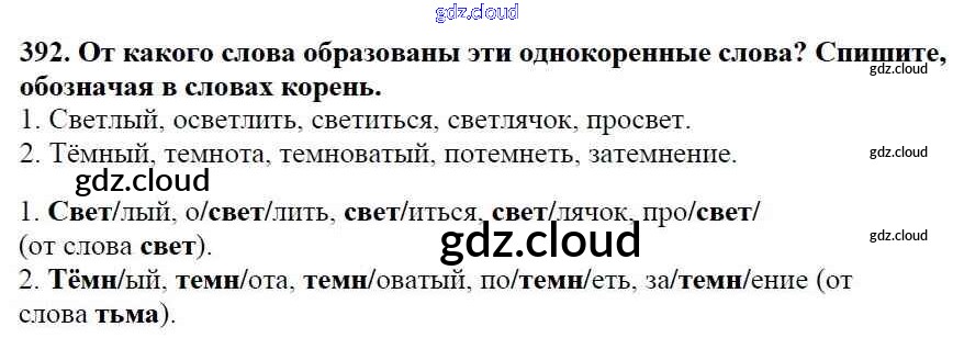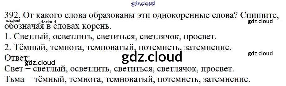 Ответ на задание 392 Учебник Русский язык за 5 (пятый) класс Баранов, Ладыженская, Тростенцова, Кулибаба, Григорян 2016, 2019 Часть 1, 2
