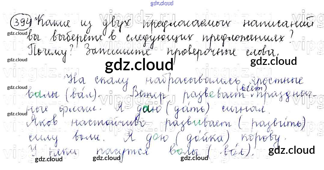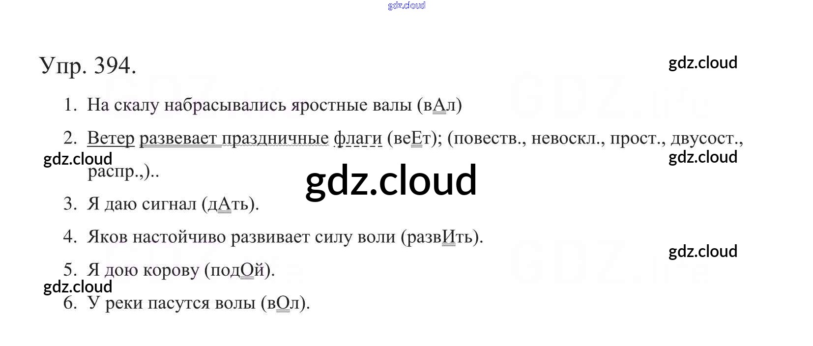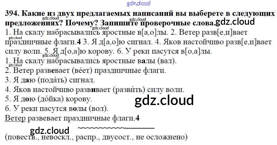 Ответ на задание 394 Учебник Русский язык за 5 (пятый) класс Баранов, Ладыженская, Тростенцова, Кулибаба, Григорян 2016, 2019 Часть 1, 2