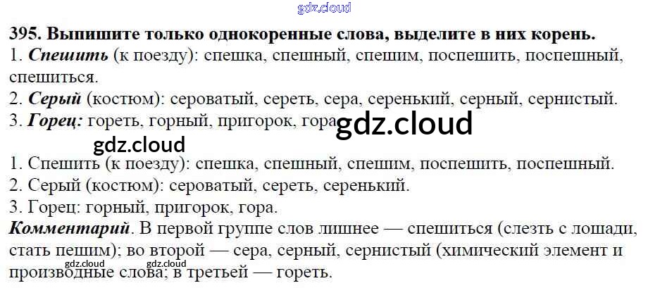 Ответ на задание 395 Учебник Русский язык за 5 (пятый) класс Баранов, Ладыженская, Тростенцова, Кулибаба, Григорян 2016, 2019 Часть 1, 2