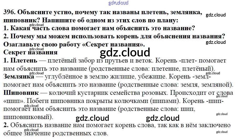 Ответ на задание 396 Учебник Русский язык за 5 (пятый) класс Баранов, Ладыженская, Тростенцова, Кулибаба, Григорян 2016, 2019 Часть 1, 2