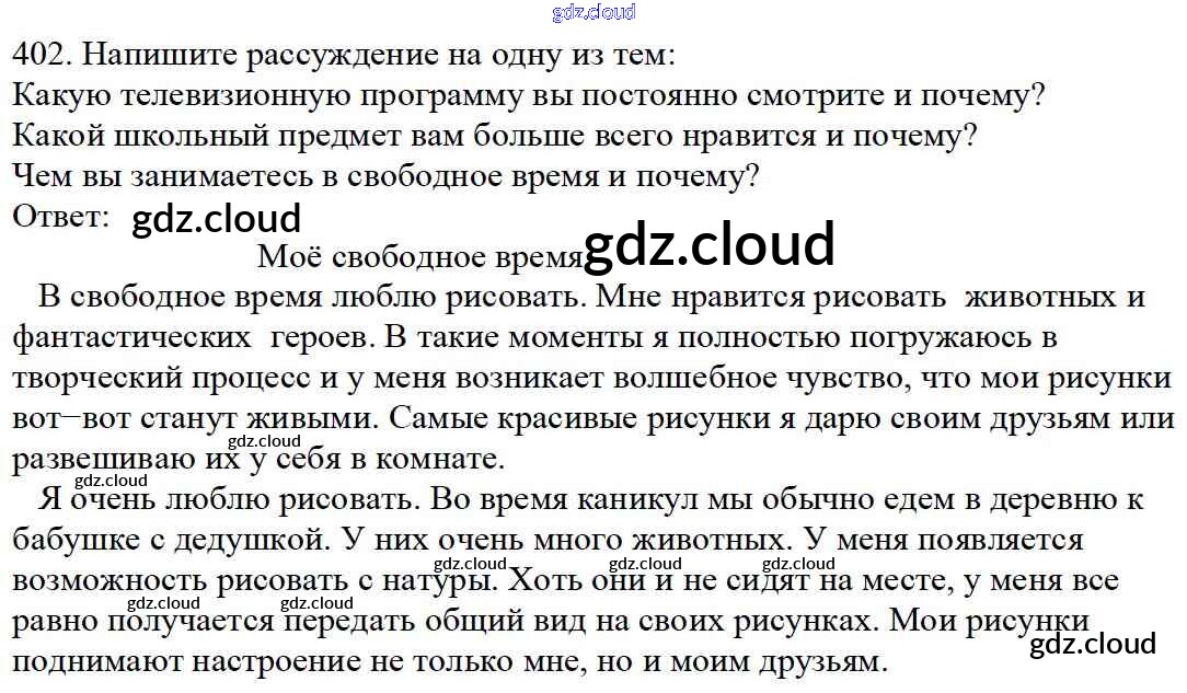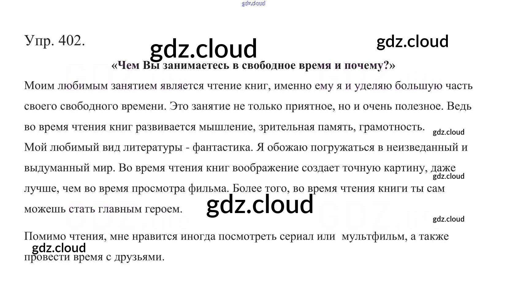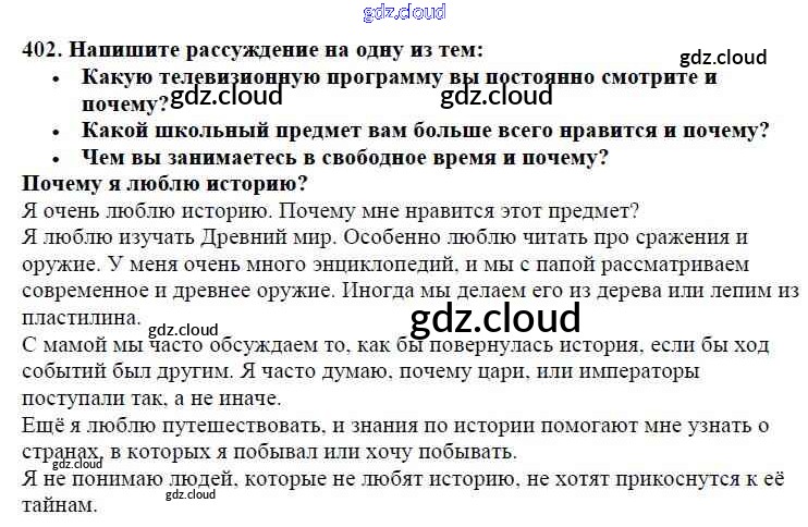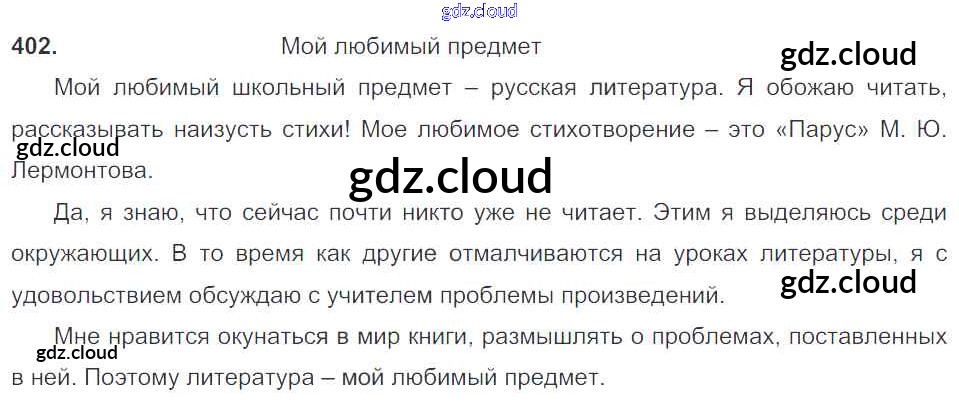 Ответ на задание 402 Учебник Русский язык за 5 (пятый) класс Баранов, Ладыженская, Тростенцова, Кулибаба, Григорян 2016, 2019 Часть 1, 2