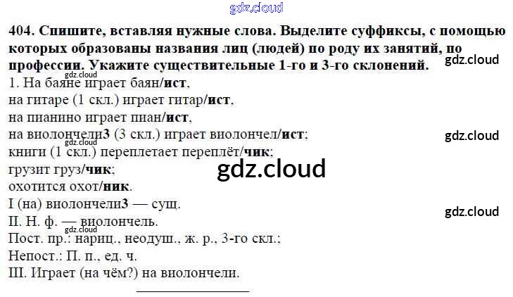Ответ на задание 404 Учебник Русский язык за 5 (пятый) класс Баранов, Ладыженская, Тростенцова, Кулибаба, Григорян 2016, 2019 Часть 1, 2