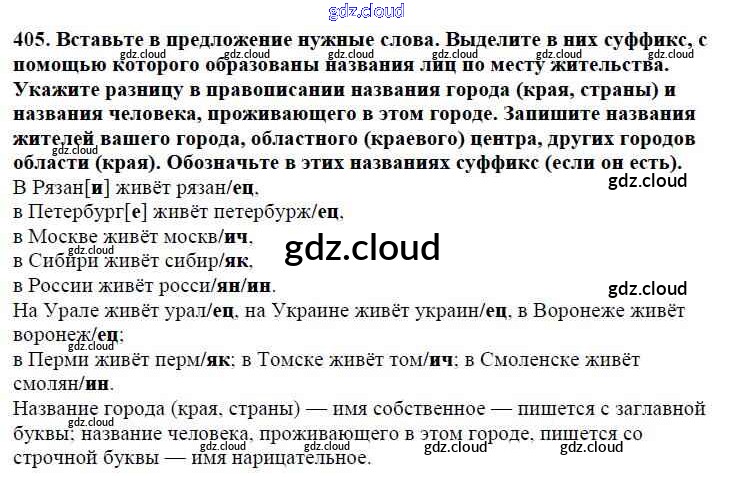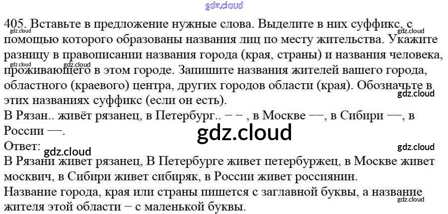 Ответ на задание 405 Учебник Русский язык за 5 (пятый) класс Баранов, Ладыженская, Тростенцова, Кулибаба, Григорян 2016, 2019 Часть 1, 2