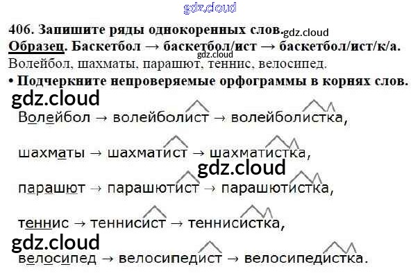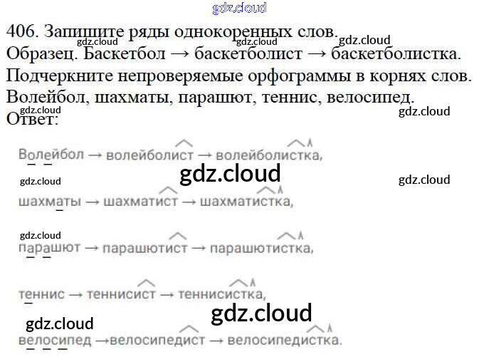 Ответ на задание 406 Учебник Русский язык за 5 (пятый) класс Баранов, Ладыженская, Тростенцова, Кулибаба, Григорян 2016, 2019 Часть 1, 2