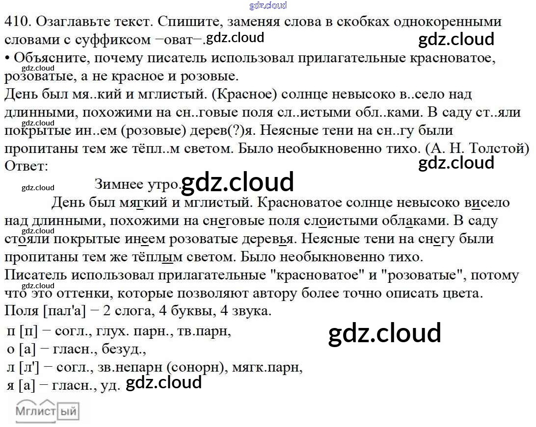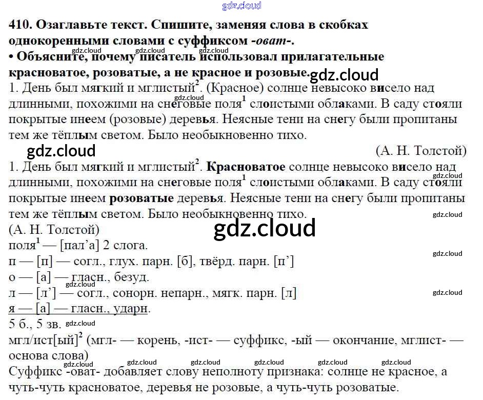 Ответ на задание 410 Учебник Русский язык за 5 (пятый) класс Баранов, Ладыженская, Тростенцова, Кулибаба, Григорян 2016, 2019 Часть 1, 2