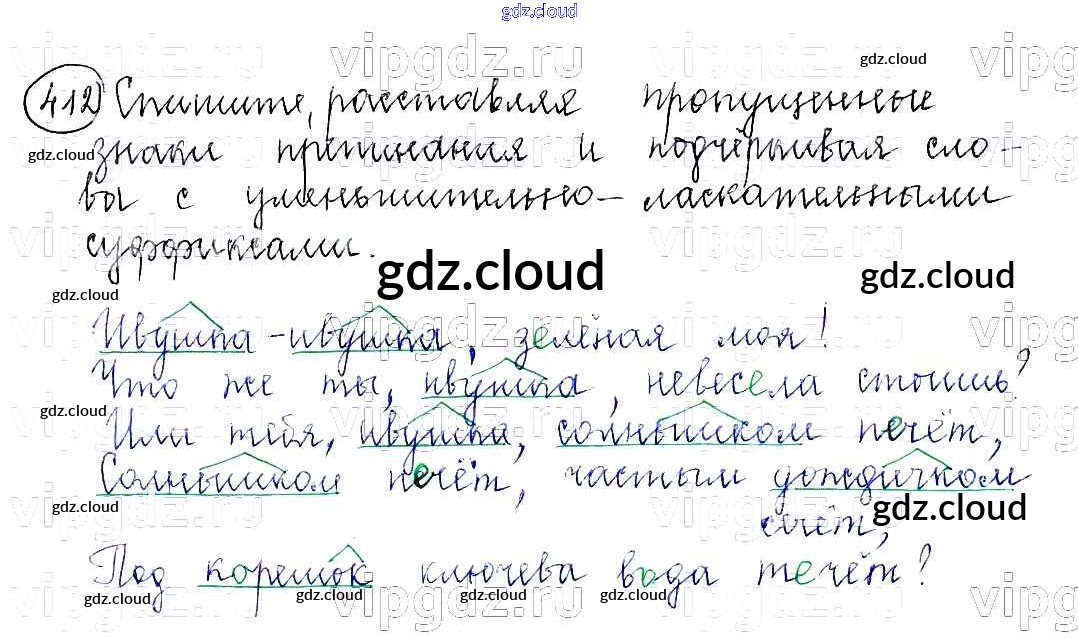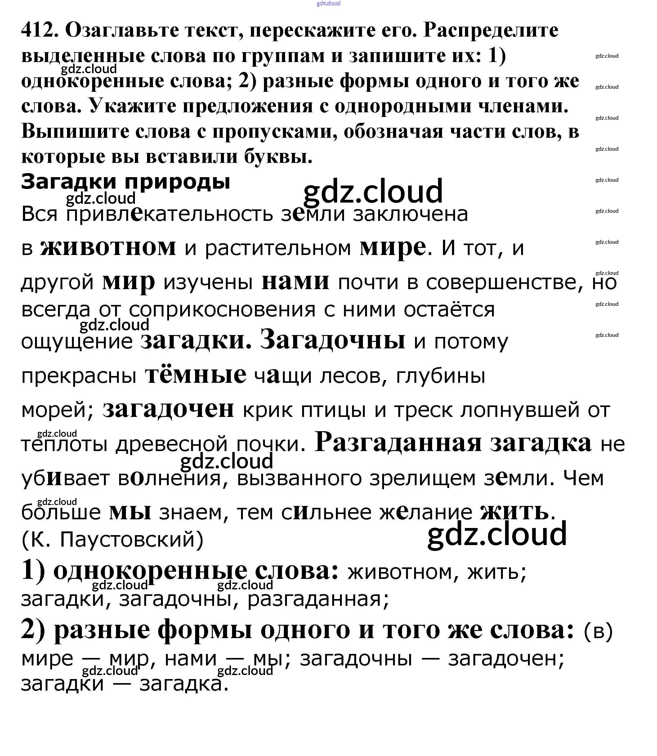 Ответ на задание 412 Учебник Русский язык за 5 (пятый) класс Баранов, Ладыженская, Тростенцова, Кулибаба, Григорян 2016, 2019 Часть 1, 2