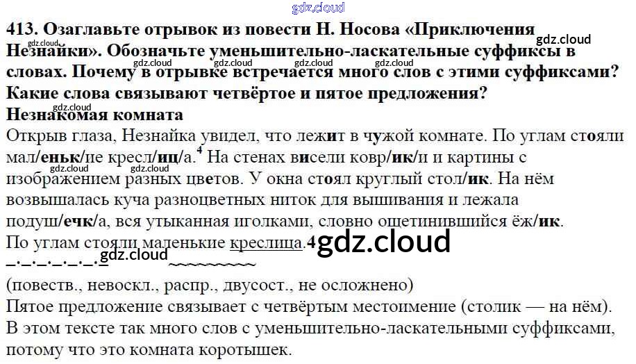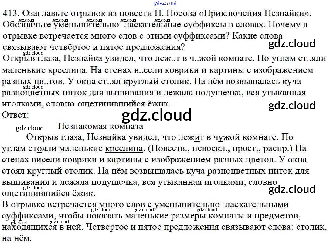 Ответ на задание 413 Учебник Русский язык за 5 (пятый) класс Баранов, Ладыженская, Тростенцова, Кулибаба, Григорян 2016, 2019 Часть 1, 2