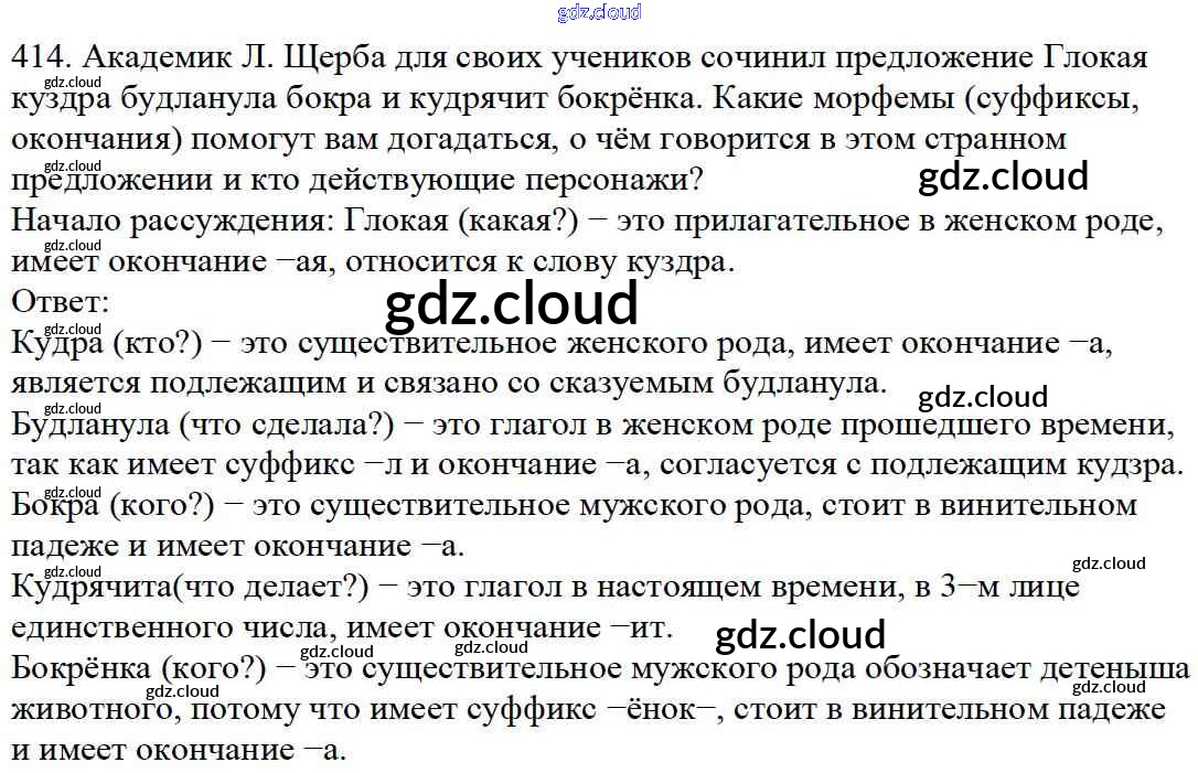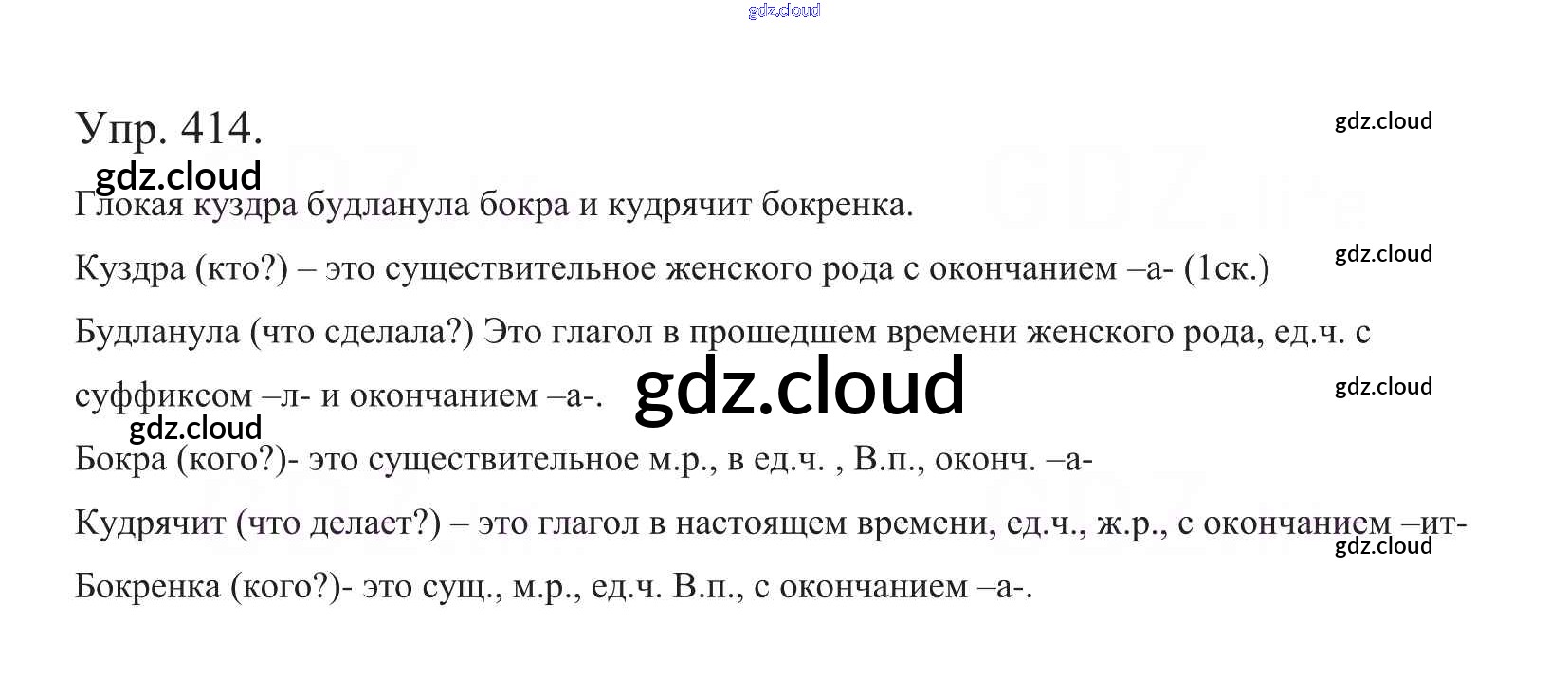 Ответ на задание 414 Учебник Русский язык за 5 (пятый) класс Баранов, Ладыженская, Тростенцова, Кулибаба, Григорян 2016, 2019 Часть 1, 2