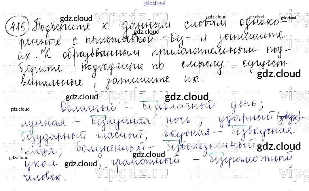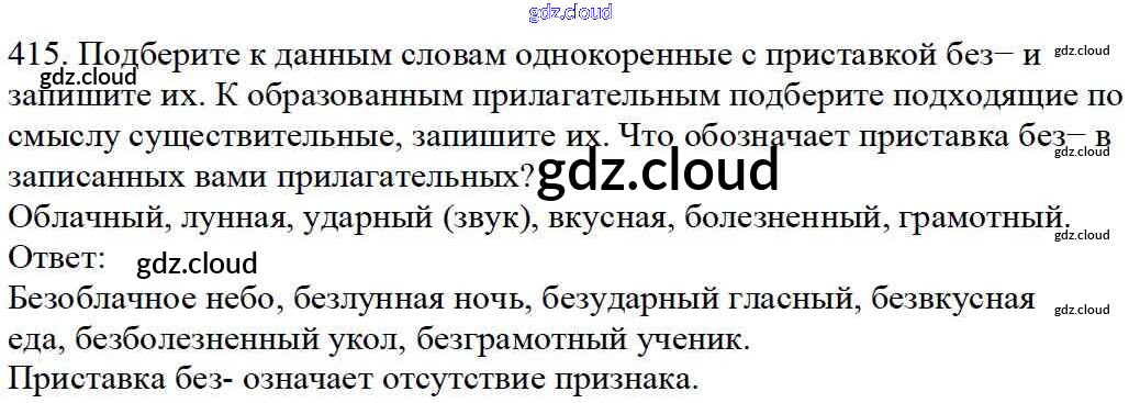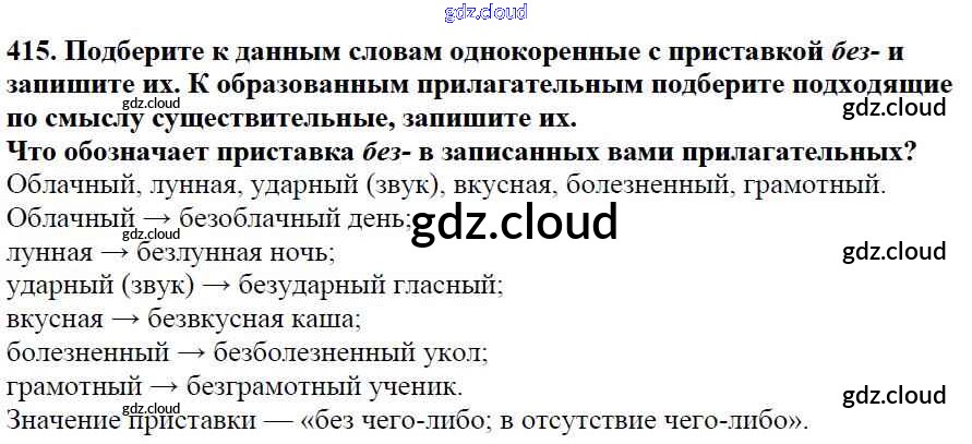 Ответ на задание 415 Учебник Русский язык за 5 (пятый) класс Баранов, Ладыженская, Тростенцова, Кулибаба, Григорян 2016, 2019 Часть 1, 2