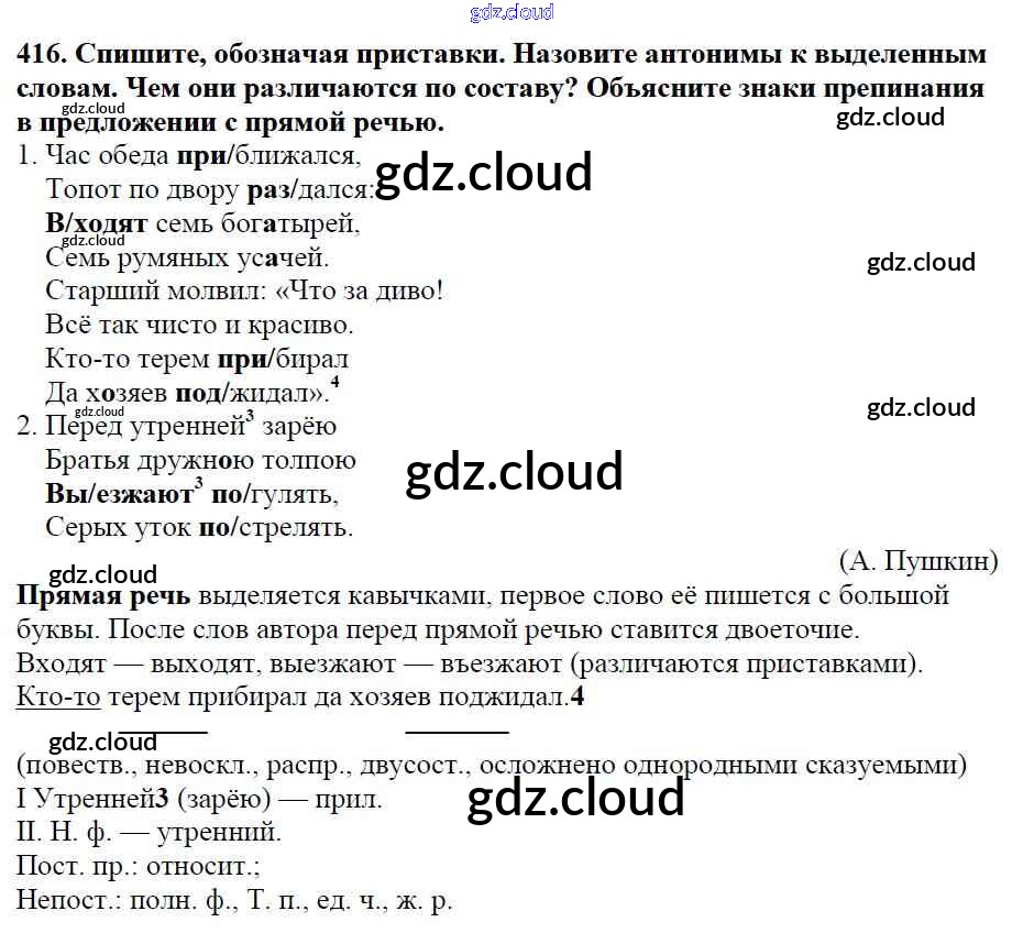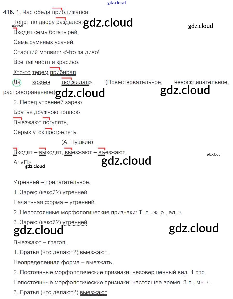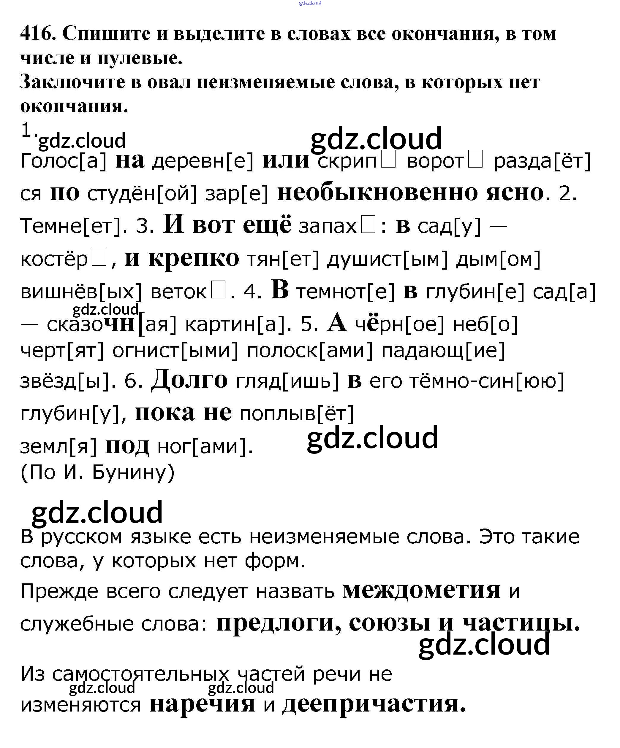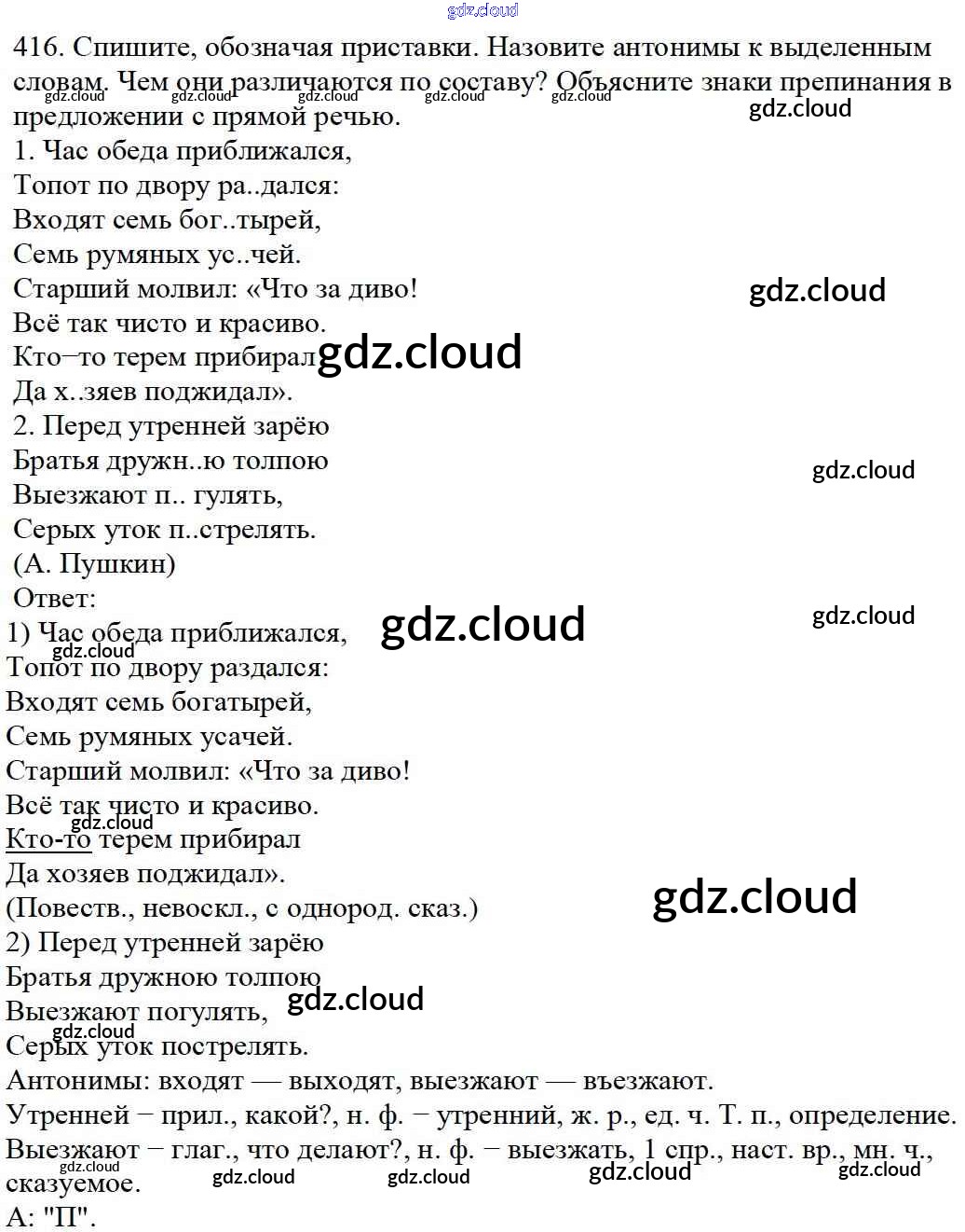 Ответ на задание 416 Учебник Русский язык за 5 (пятый) класс Баранов, Ладыженская, Тростенцова, Кулибаба, Григорян 2016, 2019 Часть 1, 2