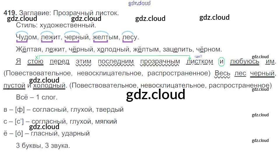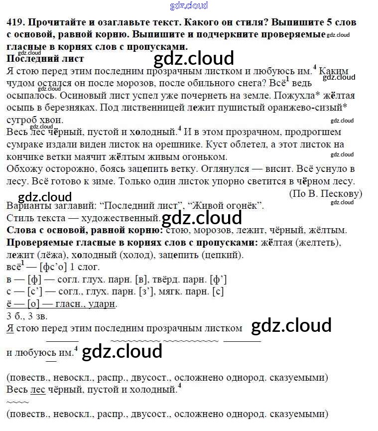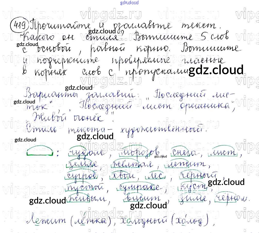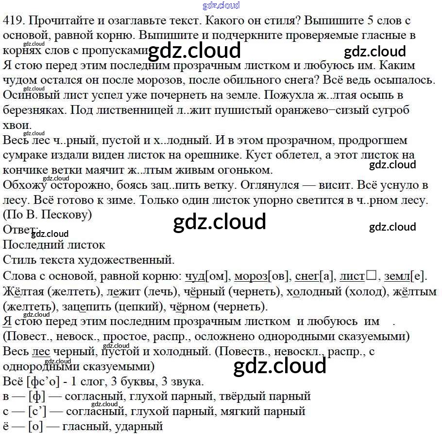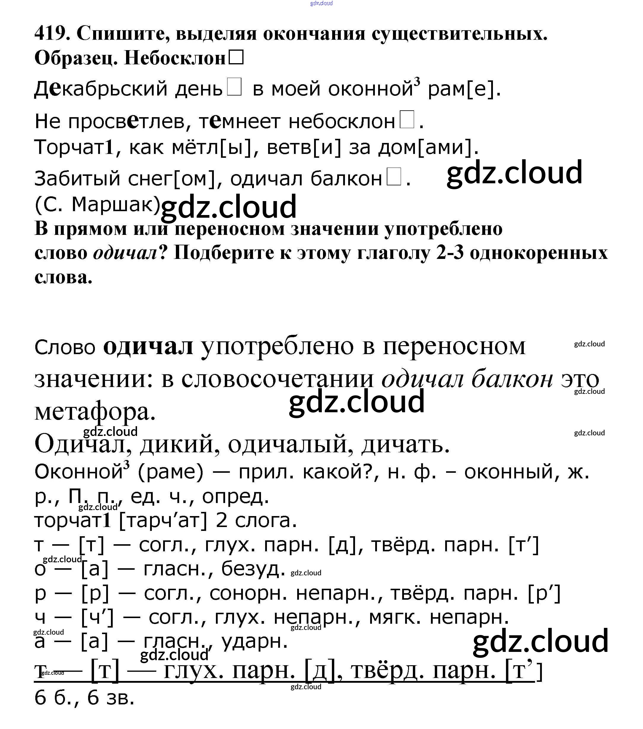 Ответ на задание 419 Учебник Русский язык за 5 (пятый) класс Баранов, Ладыженская, Тростенцова, Кулибаба, Григорян 2016, 2019 Часть 1, 2