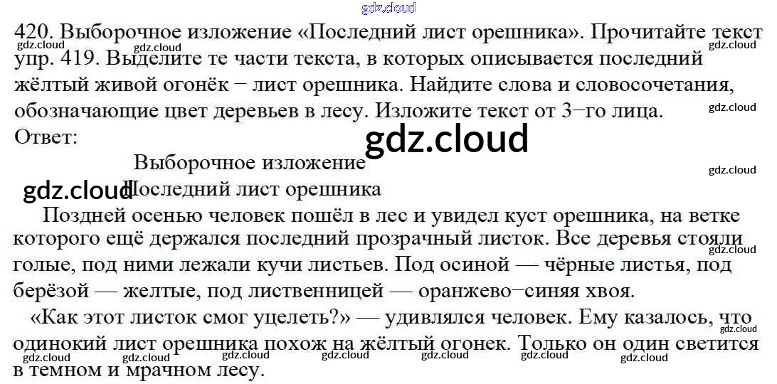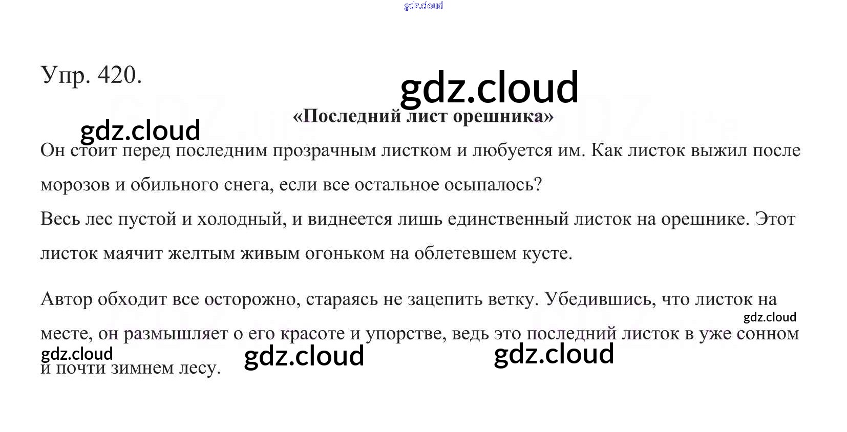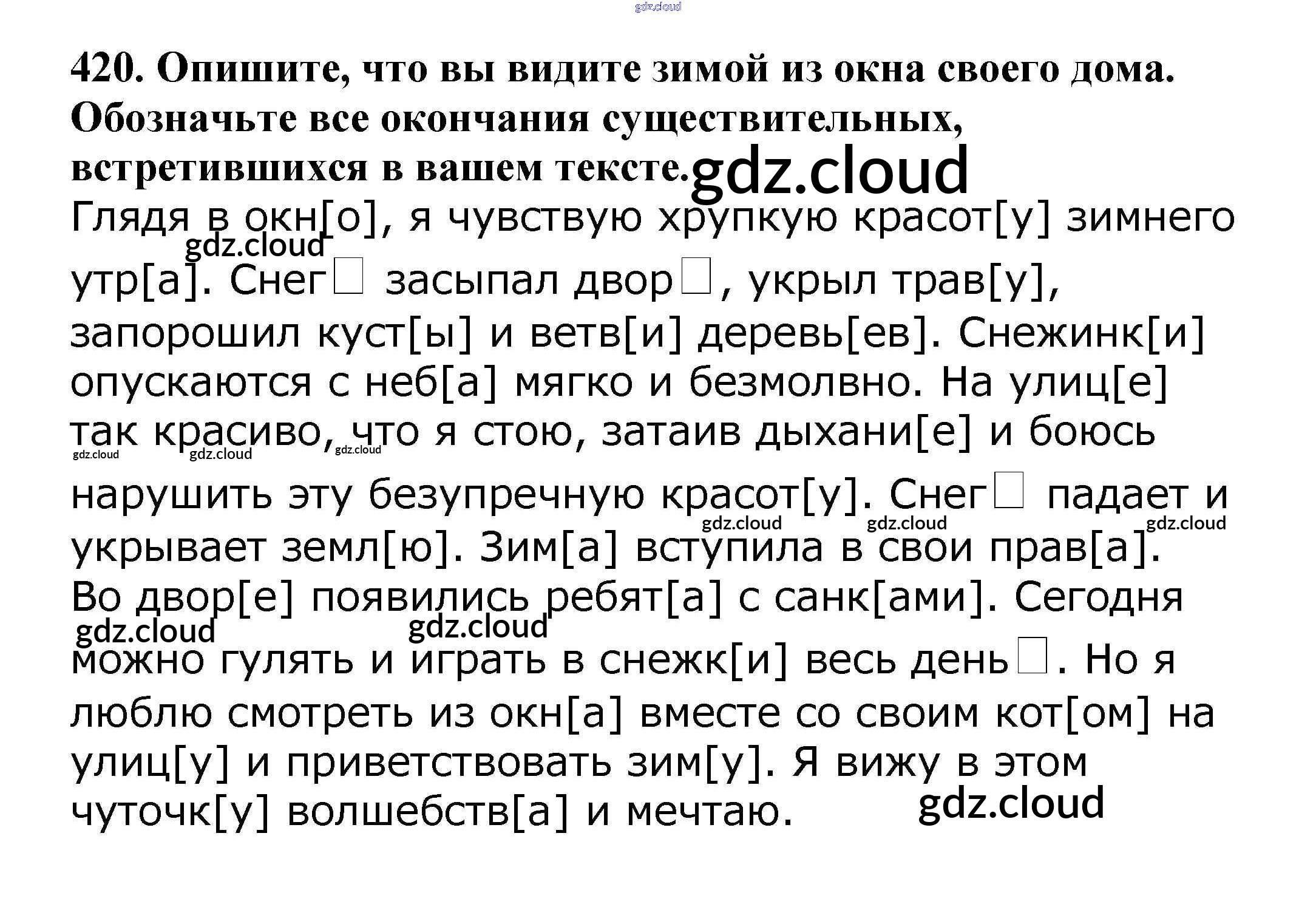 Ответ на задание 420 Учебник Русский язык за 5 (пятый) класс Баранов, Ладыженская, Тростенцова, Кулибаба, Григорян 2016, 2019 Часть 1, 2